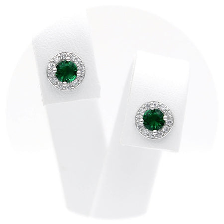 Ασημένια επιπλατινωμένα σκουλαρίκια ροζέτες σε στρόγγυλο σχήμα, με κόκκινη κεντρική και λευκές πέτρες ζιργκόν στην περιφέρεια.