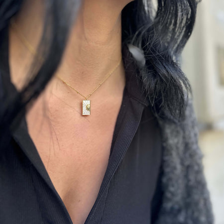 Ασημένιο επιχρυσωμένο κολιέ με λευκό σμάλτο