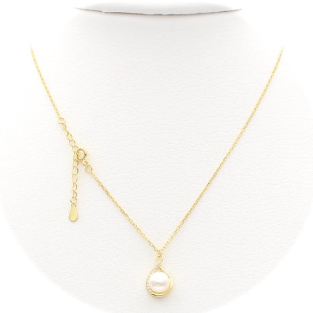 Ασημένιο επιχρυσωμένο κολιέ 925 με μαργαριτάρι και ζιργκόν