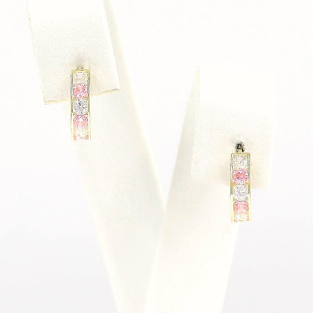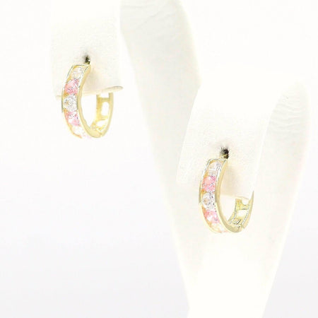 Χρυσά σκουλαρίκια κρίκοι 14 καρατίων, διακοσμημένα από λευκές πέτρες ζιργκόν