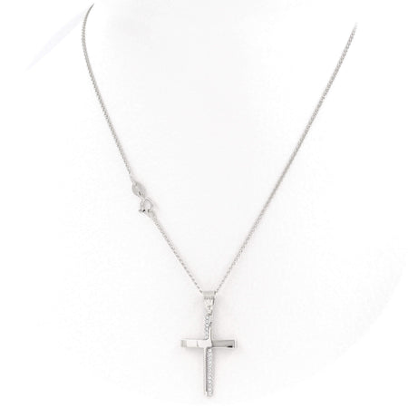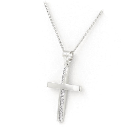 Λευκόχρυσος βαπτιστικός σταυρός 9 καρατίων, με λευκές πέτρες ζιργκόν