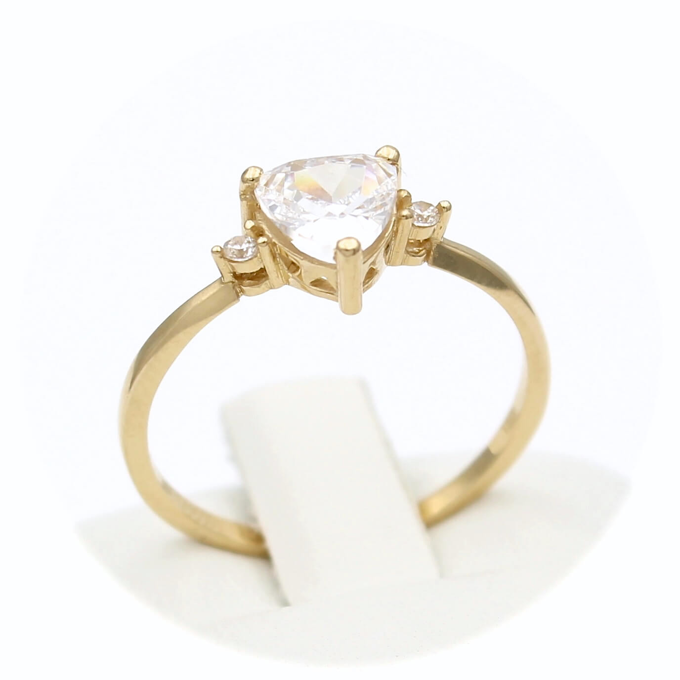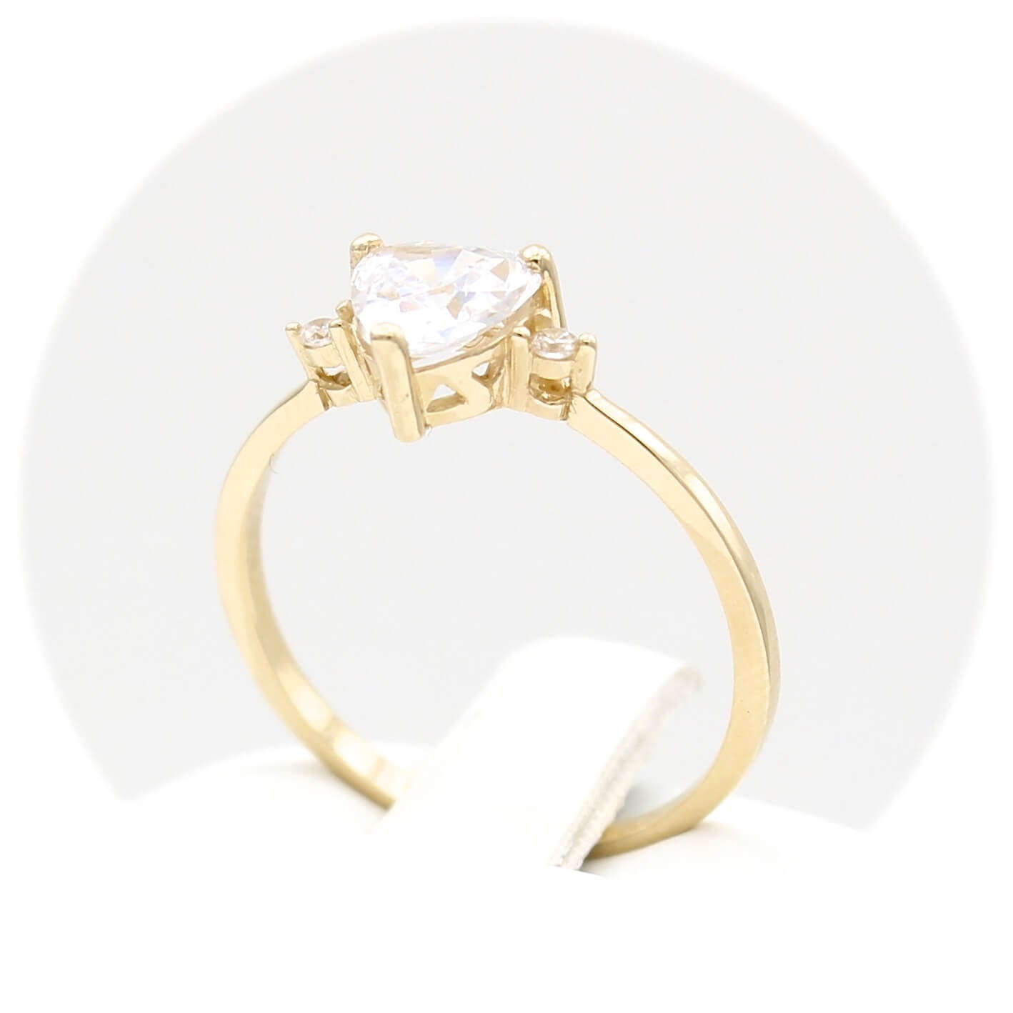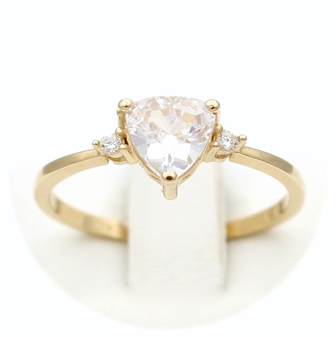 Χρυσό μονόπετρο δαχτυλίδι 14 καρατίων με κεντρική και πλευρικές λευκές πέτρες ζιργκόν