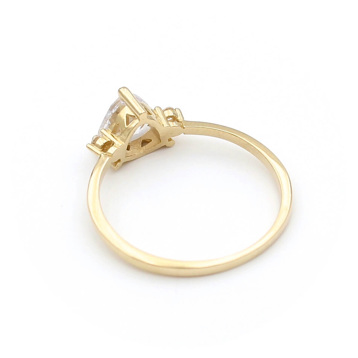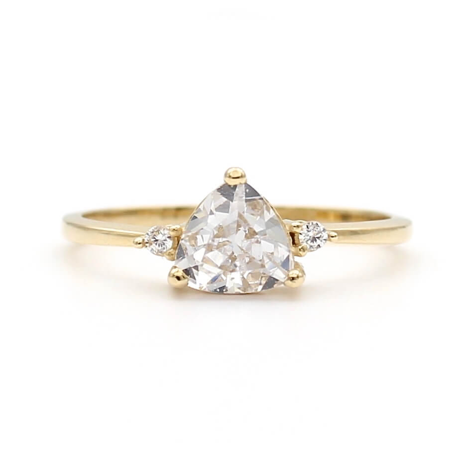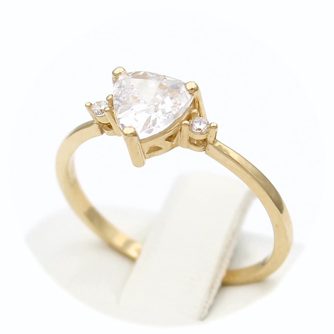 Χρυσό μονόπετρο δαχτυλίδι 14 καρατίων με κεντρική και πλευρικές λευκές πέτρες ζιργκόν