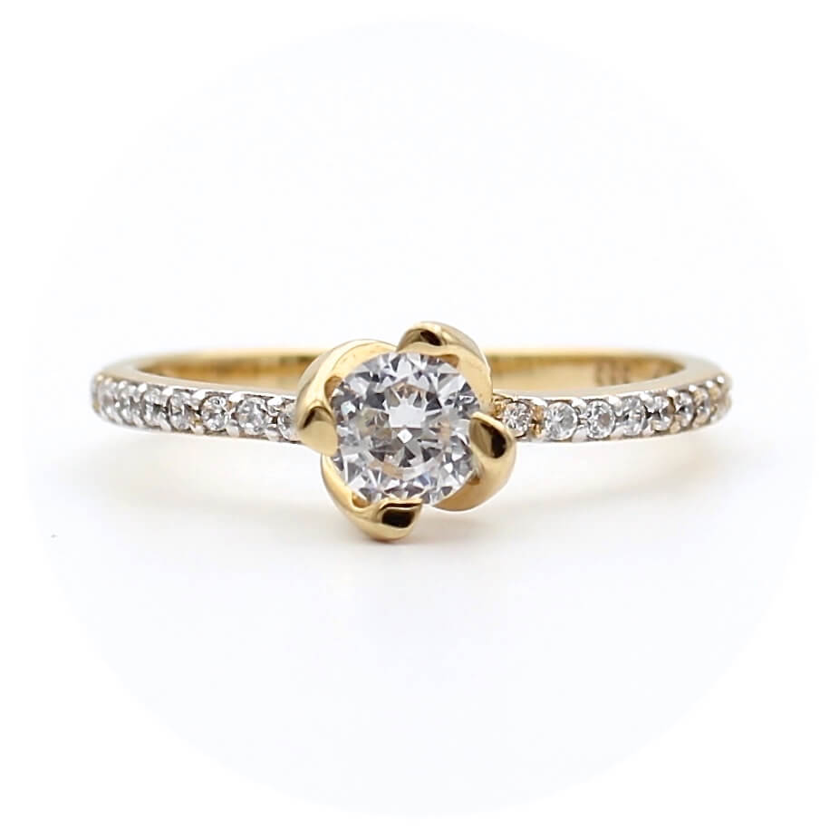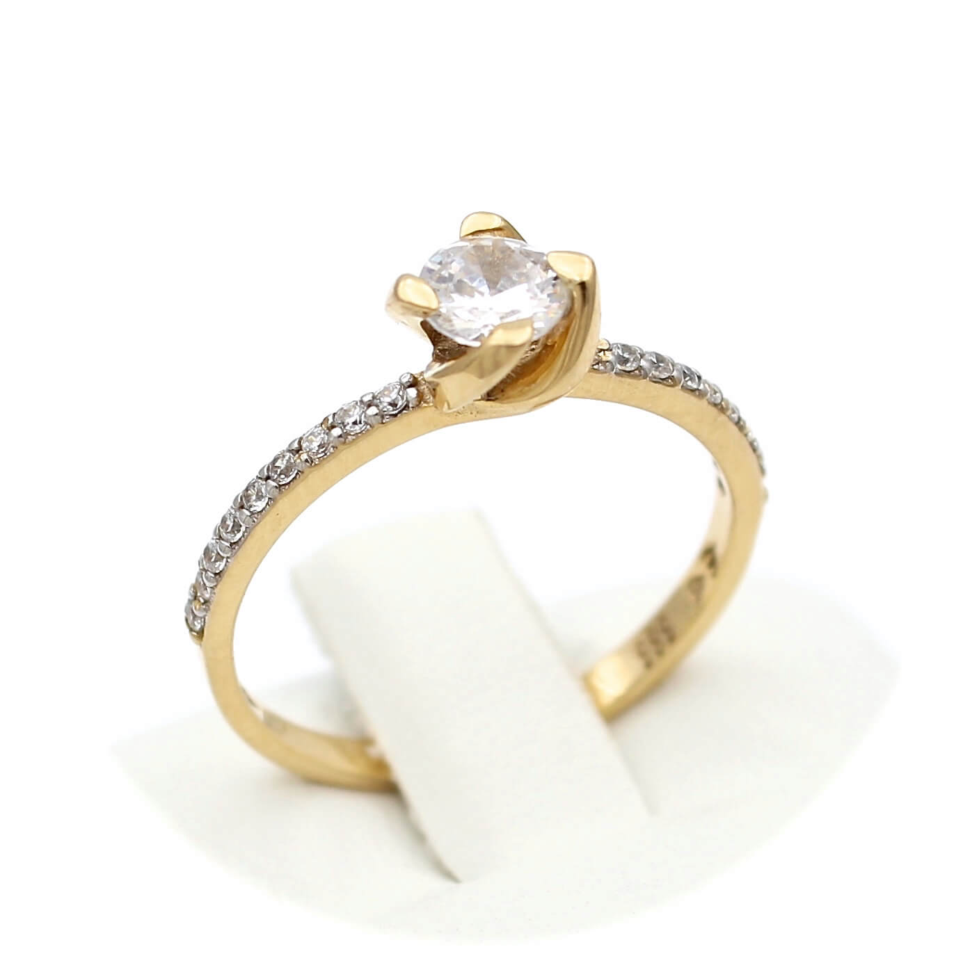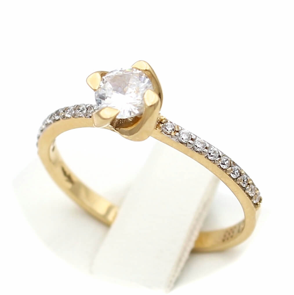 Χρυσό δίχρωμο μονόπετρο δαχτυλίδι 14 καρατίων με κεντρική και πλευρικές λευκές πέτρες ζιργκόν