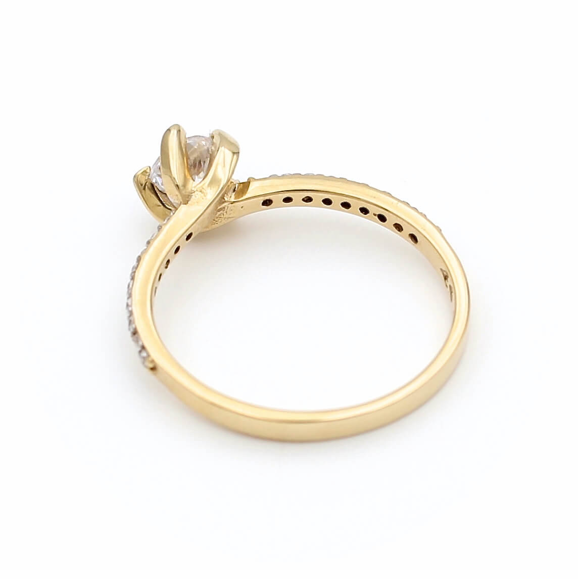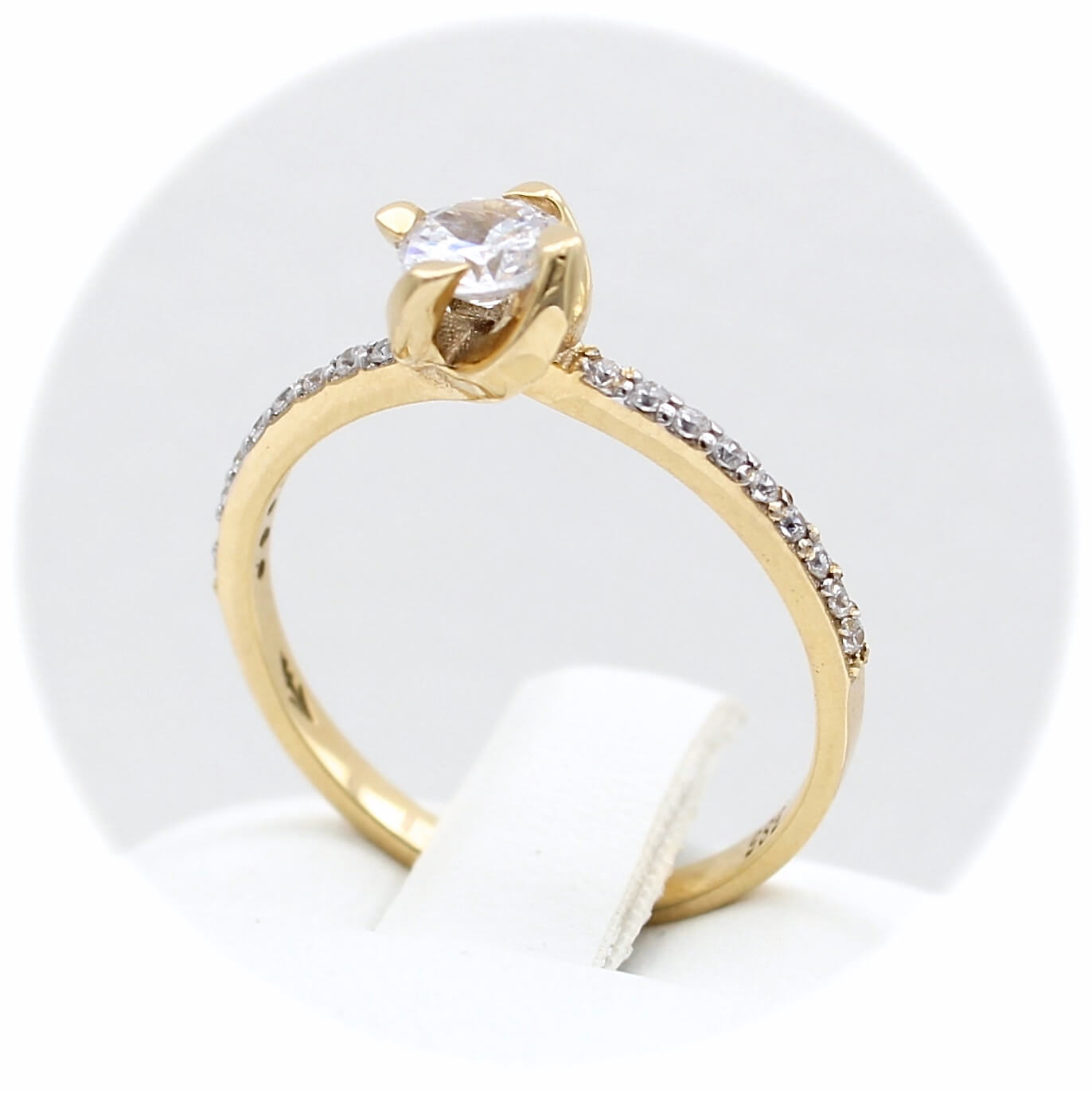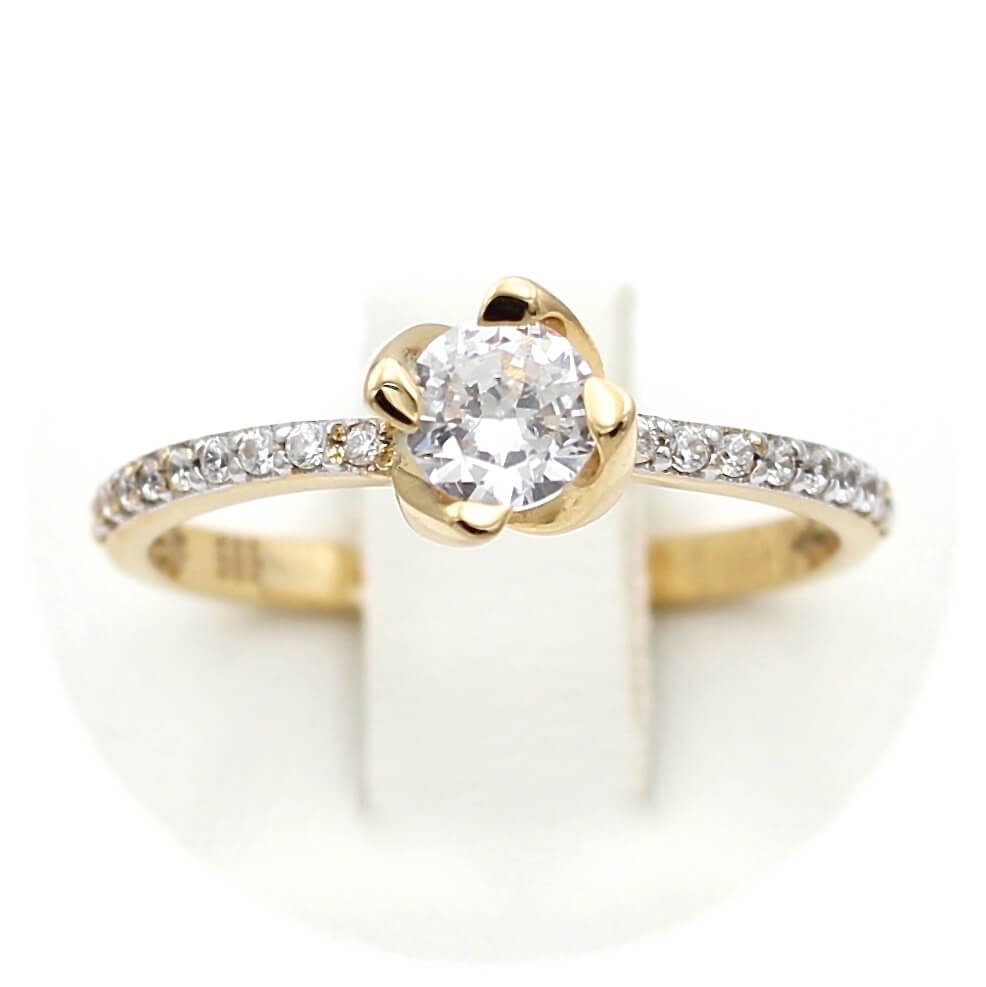 Χρυσό δίχρωμο μονόπετρο δαχτυλίδι 14 καρατίων με κεντρική και πλευρικές λευκές πέτρες ζιργκόν