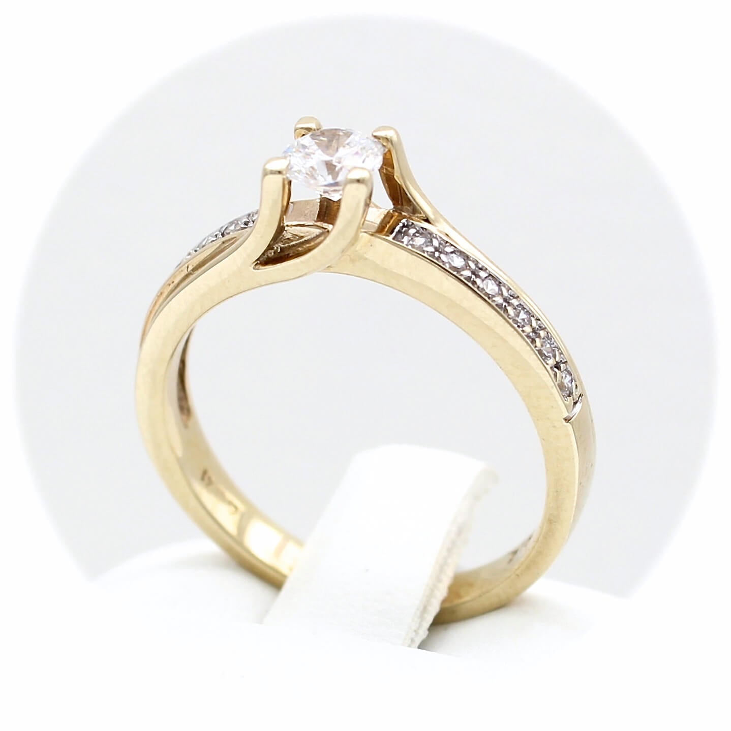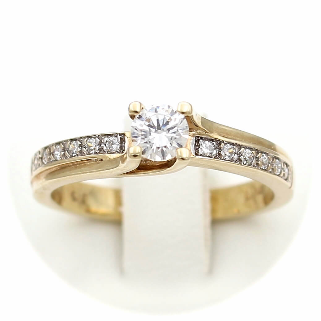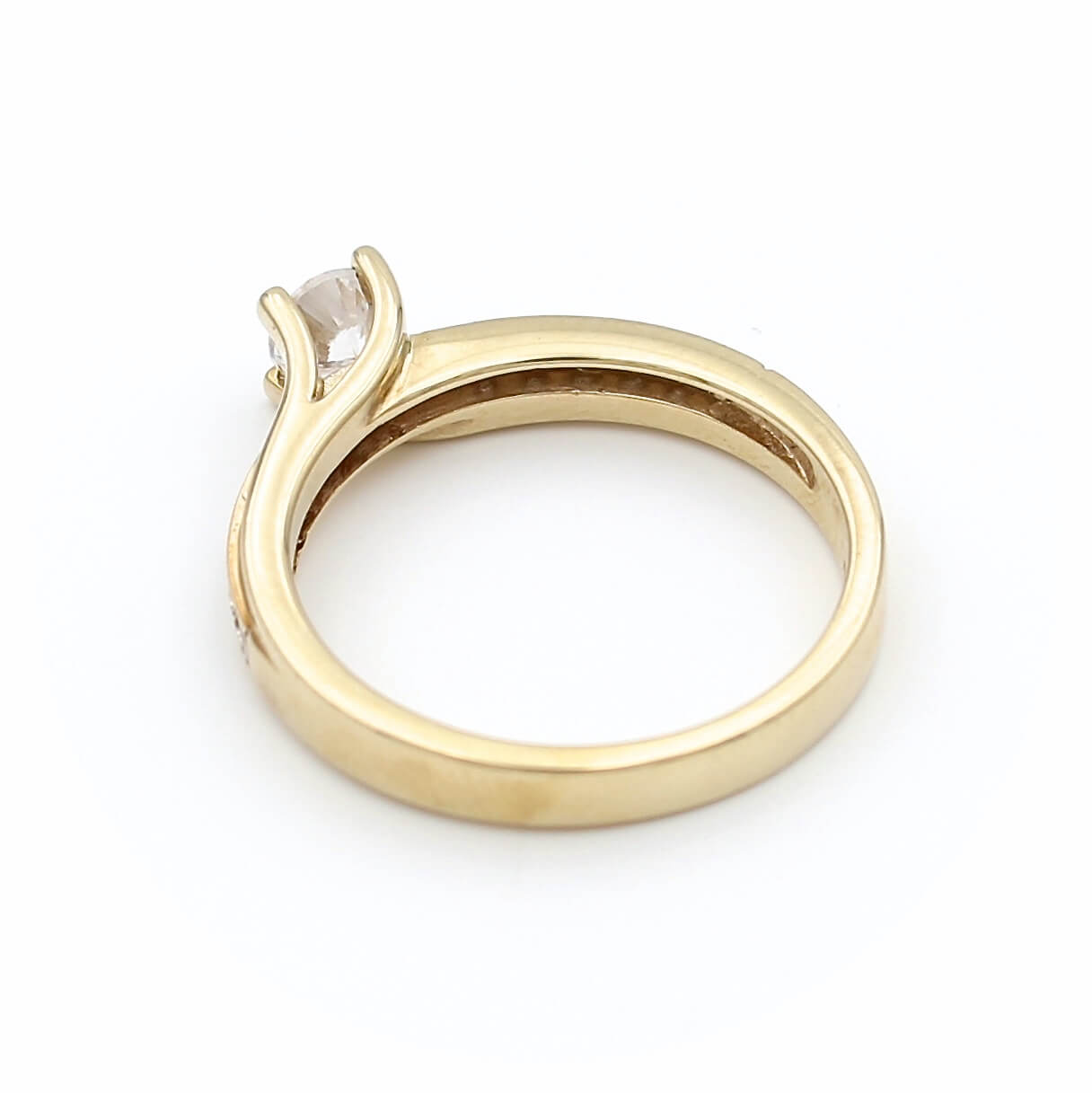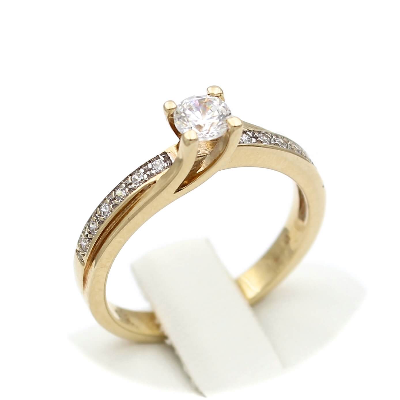 Χρυσό μονόπετρο δαχτυλίδι 9 καρατίων με κεντρική και πλευρικές λευκές πέτρες ζιργκόν