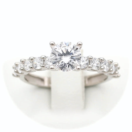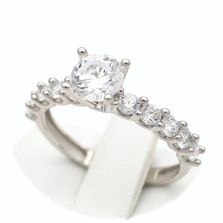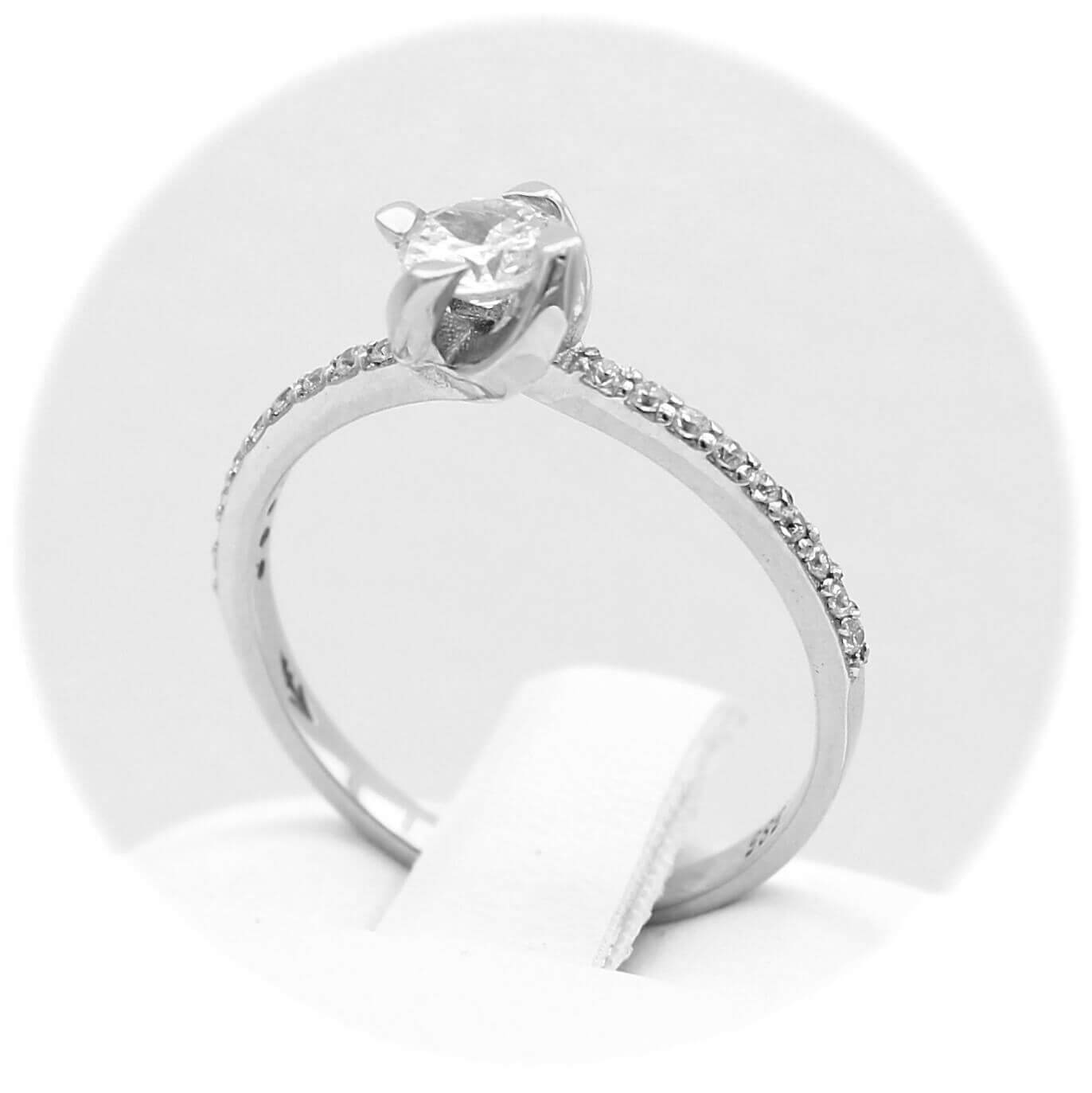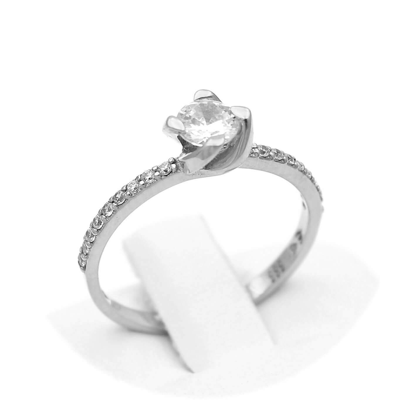 Λευκόχρυσο μονόπετρο δαχτυλίδι 14 καρατίων με κεντρική και πλευρικές λευκές πέτρες ζιργκόν