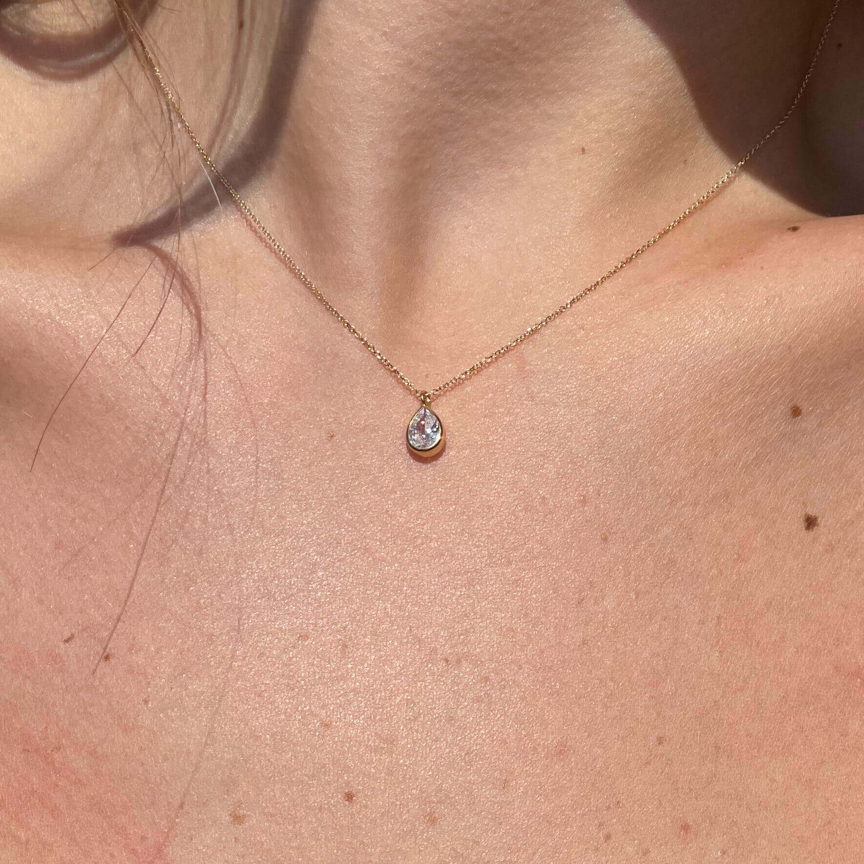 Χρυσό κολιέ 14 καρατίων με λευκή πέτρα ζιργκόν σε σχήμα δάκρυ