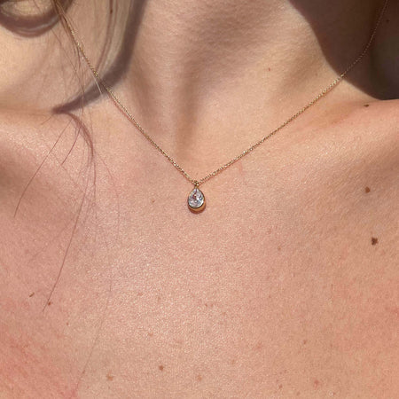 Χρυσό κολιέ 14 καρατίων με κυπαρισσί πράσινη πέτρα ζιργκόν σε σχήμα δάκρυ