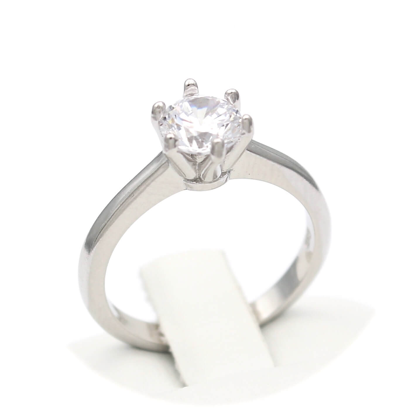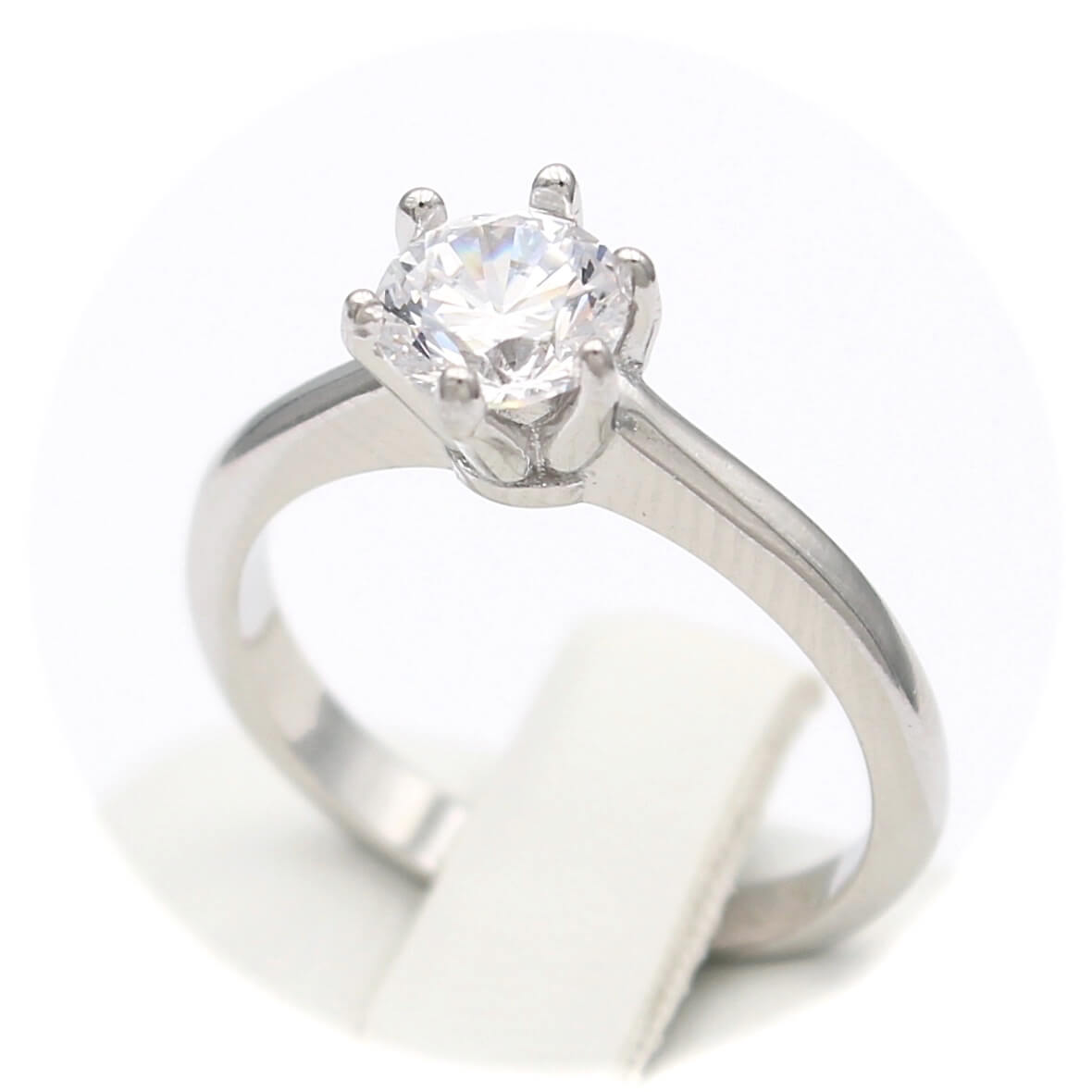 Ασημένιο επιπλατινωμένο γυναικείο δαχτυλίδι με λευκή πέτρα ζιργκόν