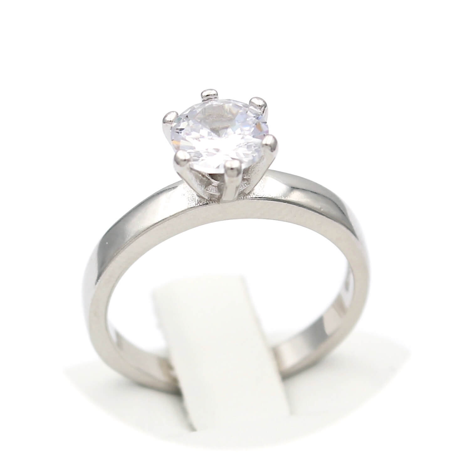 Ασημένιο γυναικείο δαχτυλίδι με λευκή πέτρα ζιργκόν