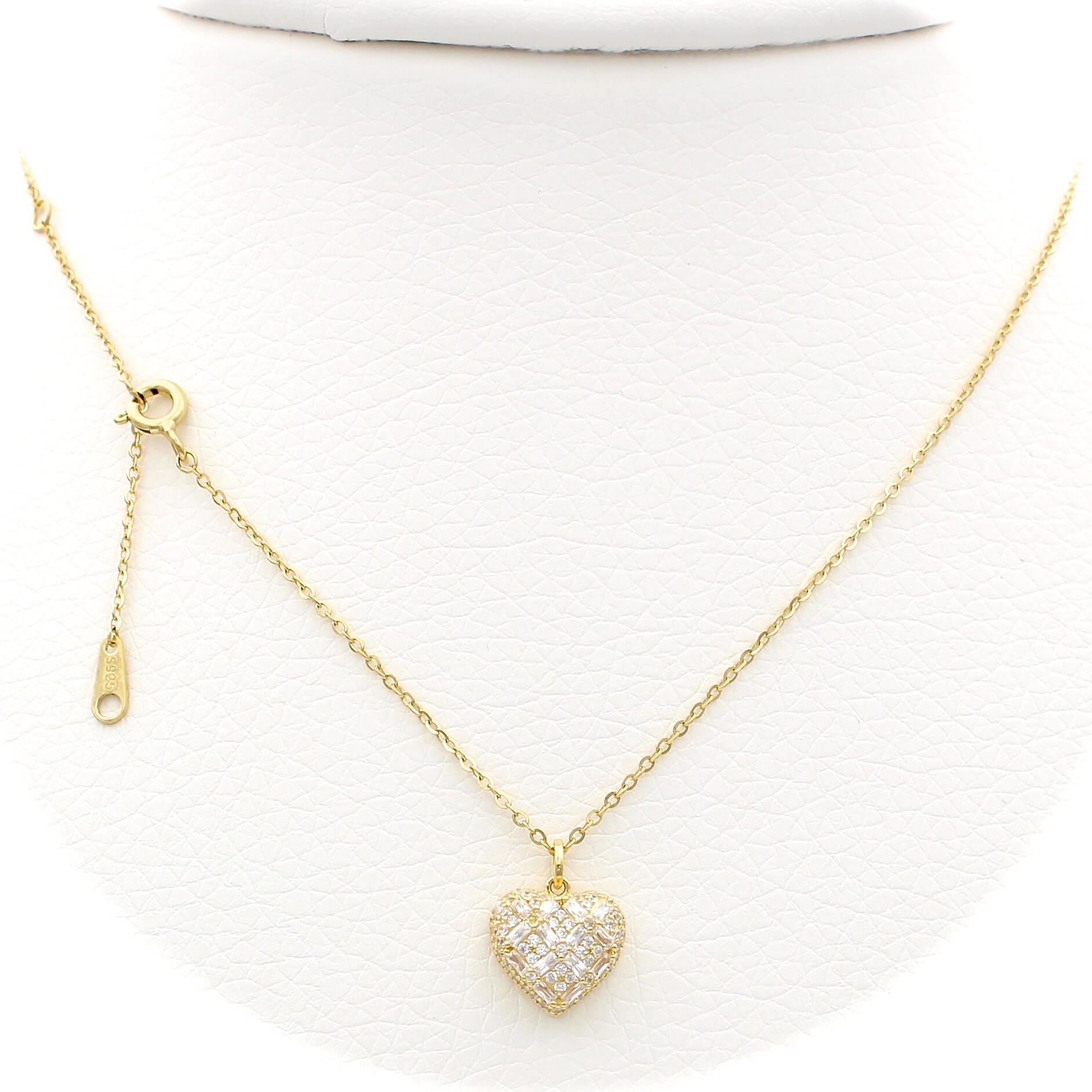 Ασημένιο επιχρυσωμένο κολιέ καρδιά με λευκές πέτρες