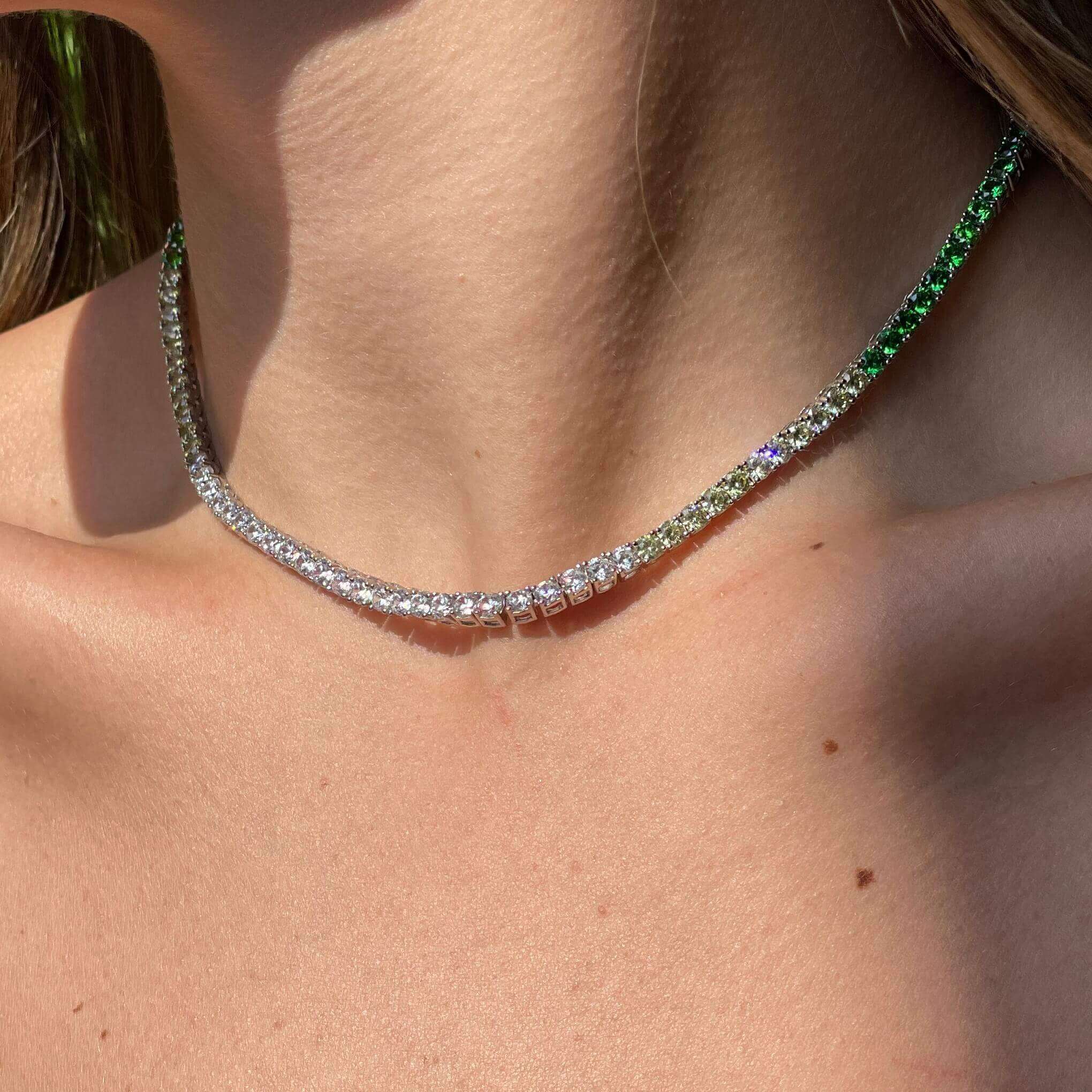 Ασημένιο κολιέ 925 ριβιέρα με πράσινες και λευκές πέτρες