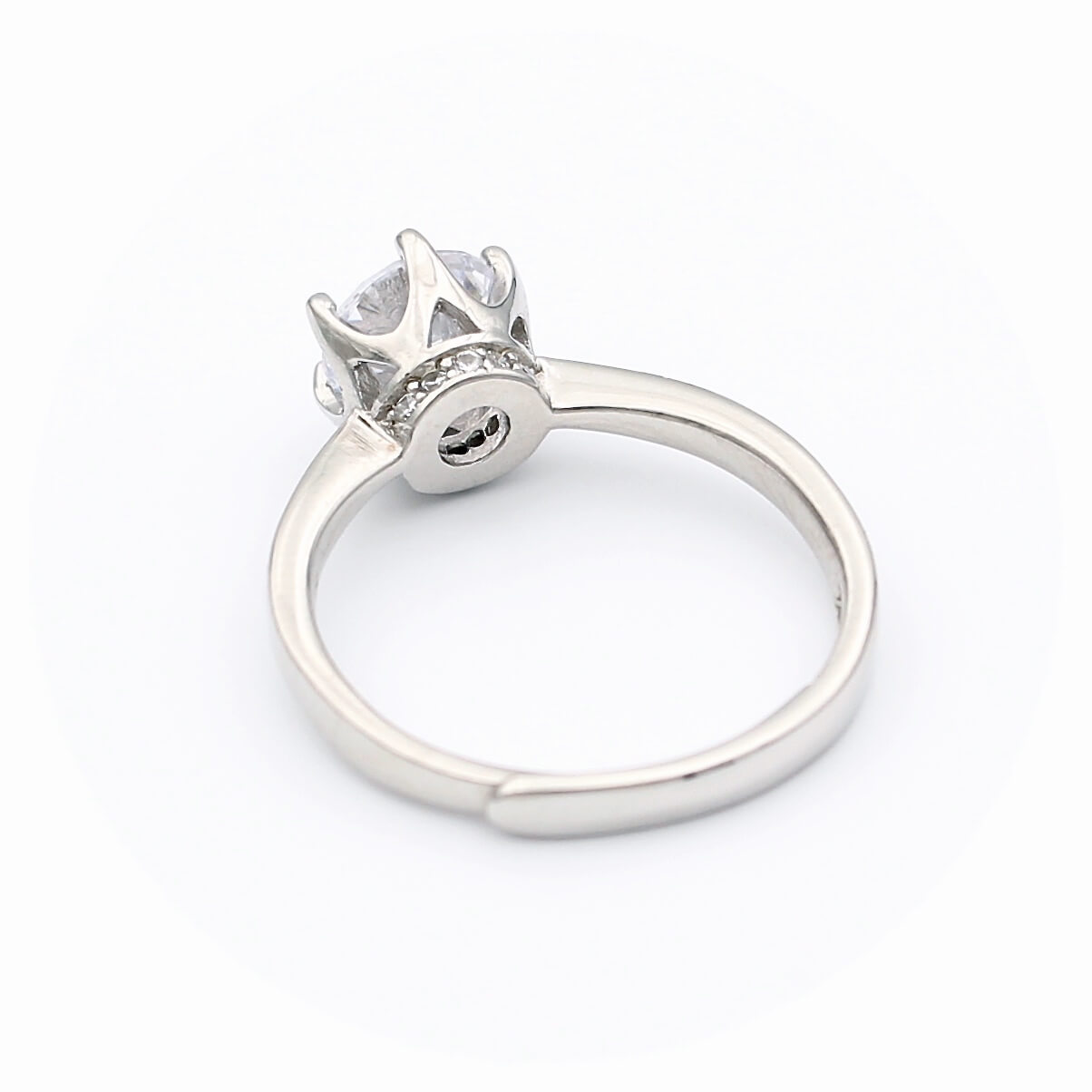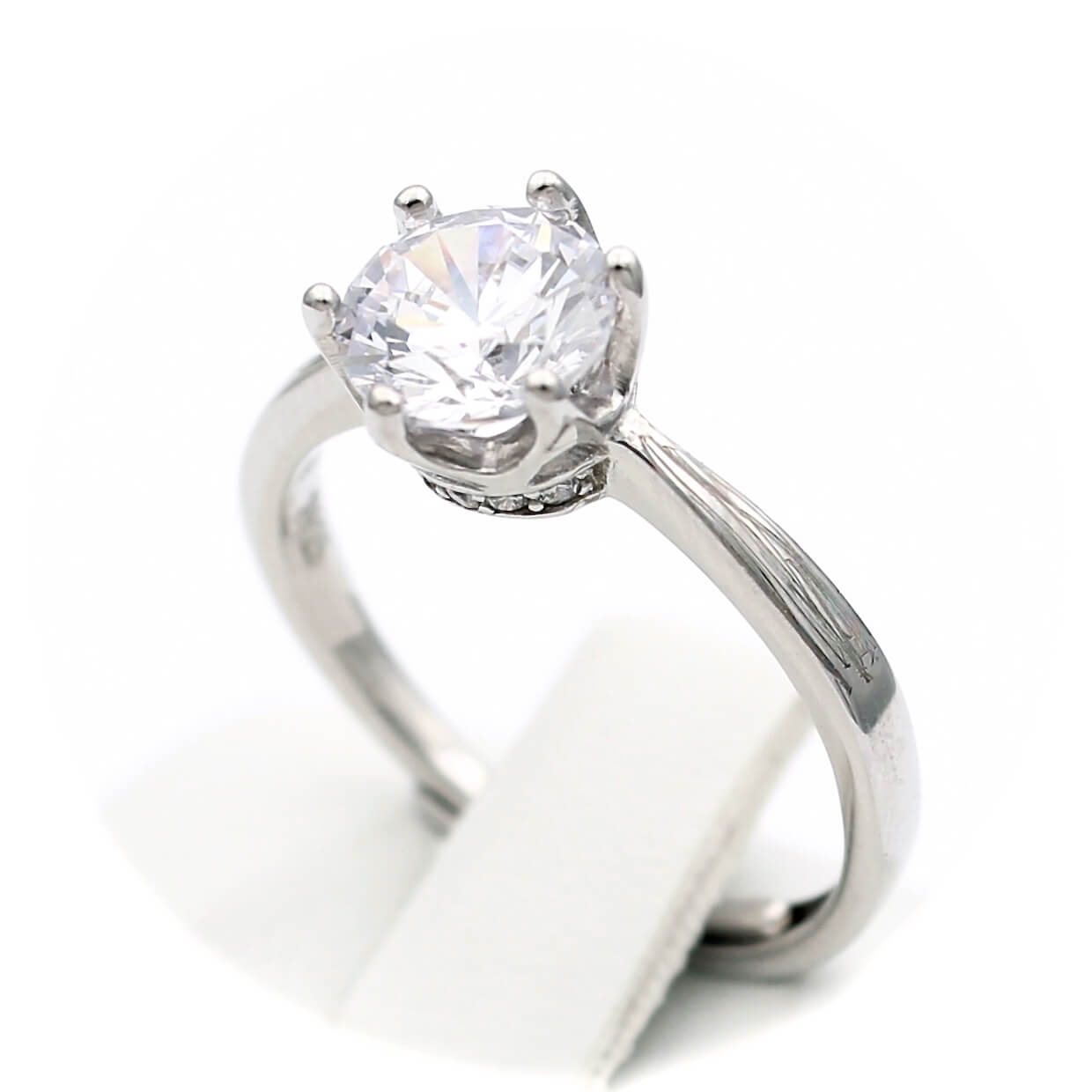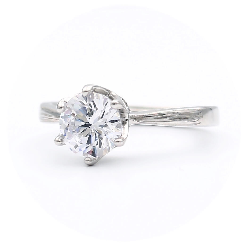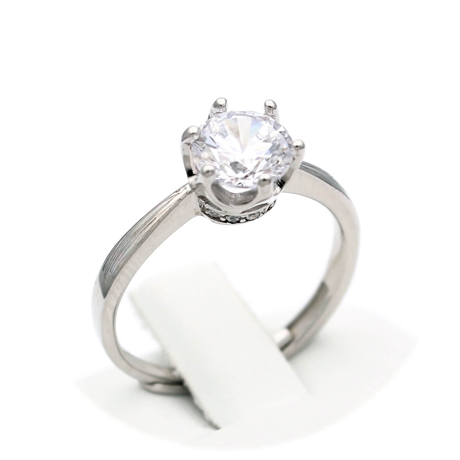 Ασημένιο επιπλατινωμένο δαχτυλίδι, διακοσμημένο από κεντρική και πλευρικές λευκές πέτρες ζιργκόν