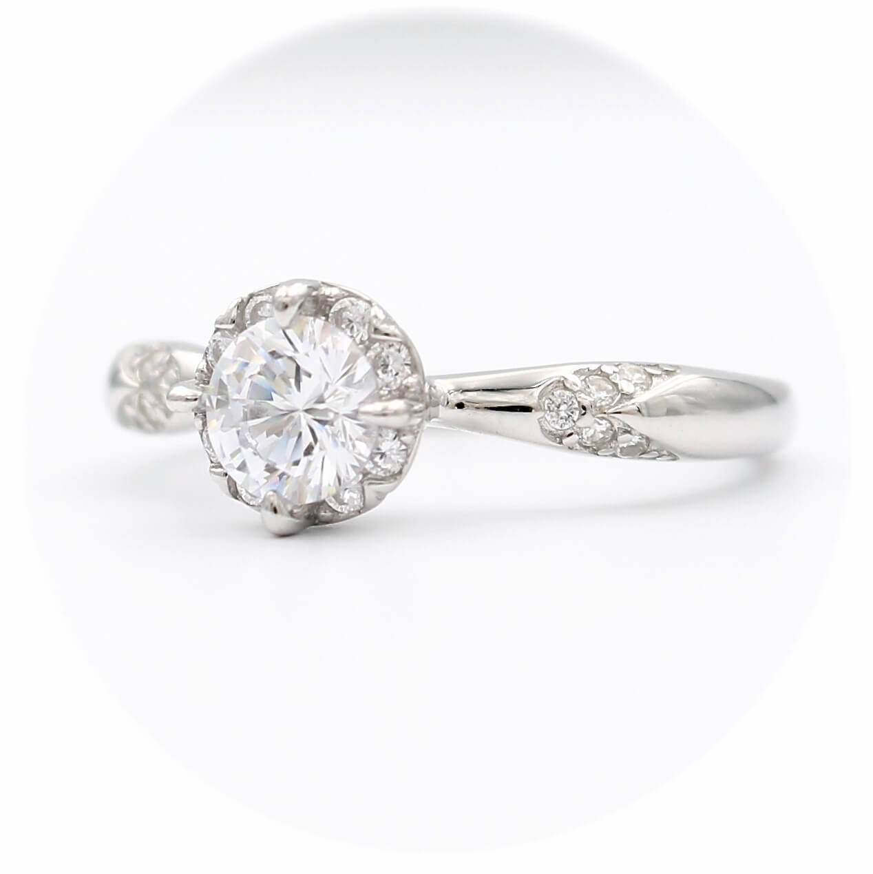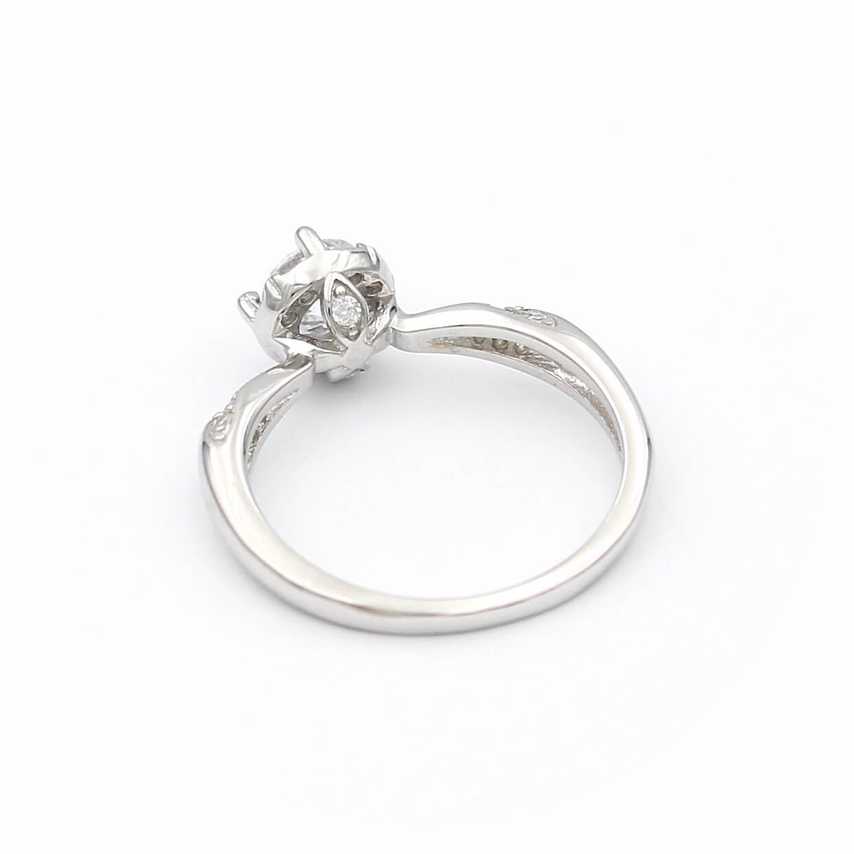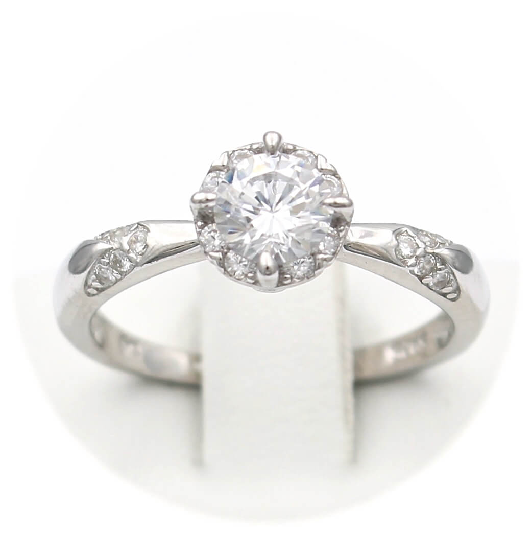 Το δαχτυλίδι είναι διακοσμημένο από κεντρική και πλευρικές λευκές πέτρες ζιργκόν