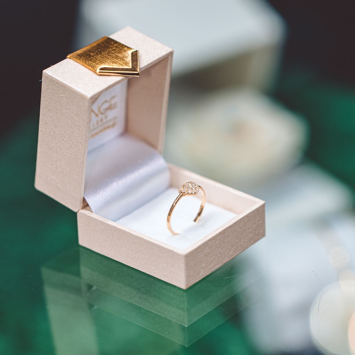 Το δαχτυλίδι είναι διακοσμημένο από λευκές πέτρες ζιργκόν