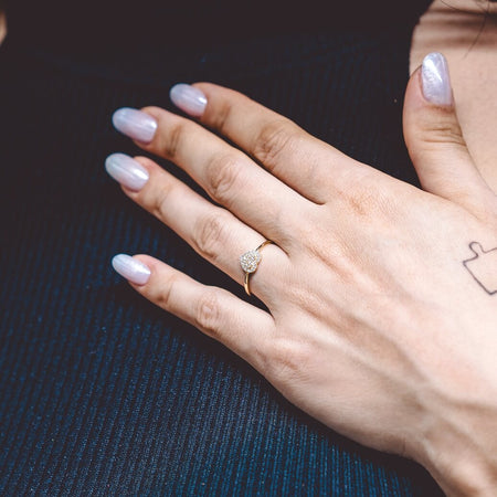 Το δαχτυλίδι είναι διακοσμημένο από λευκές πέτρες ζιργκόν