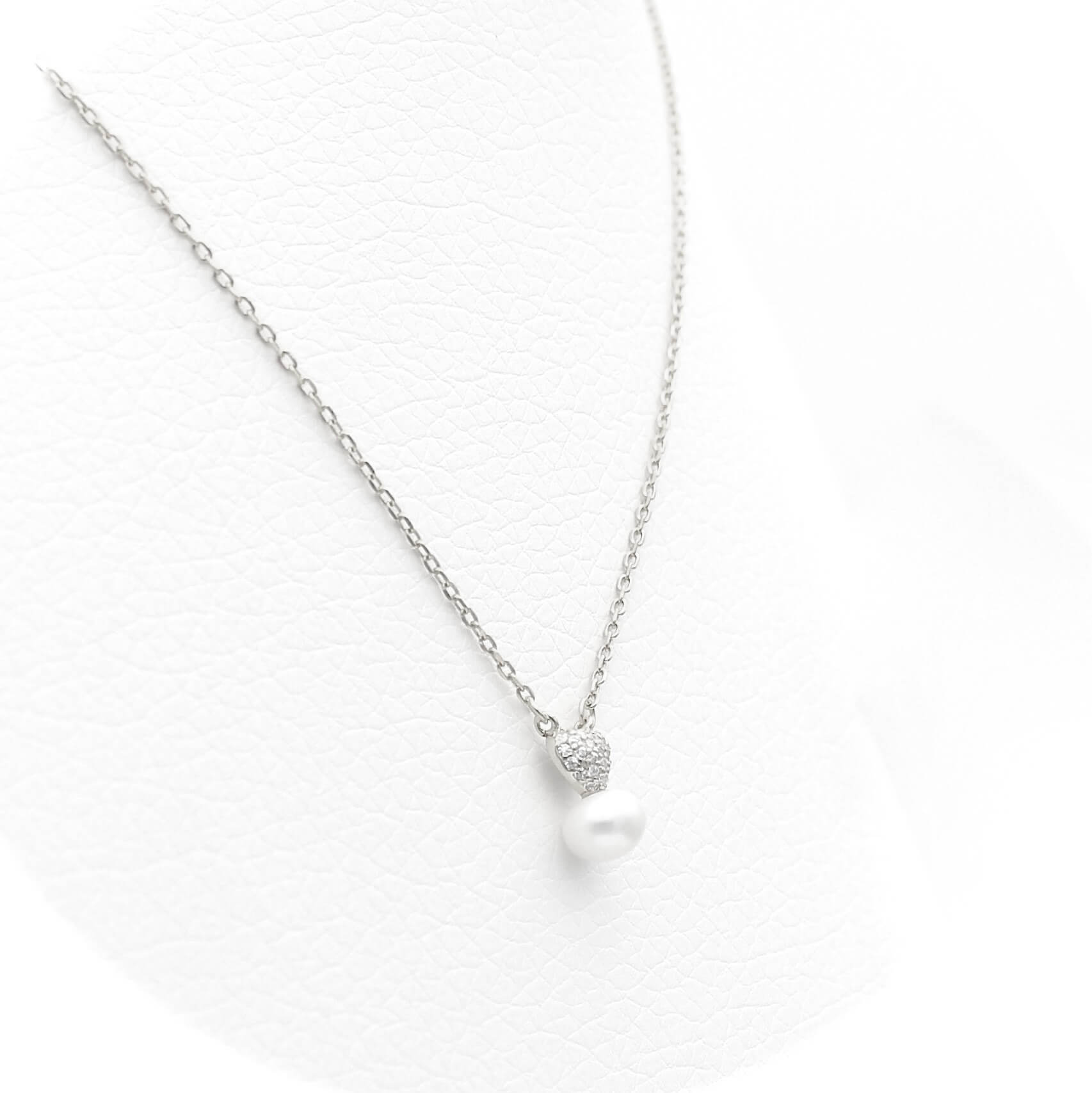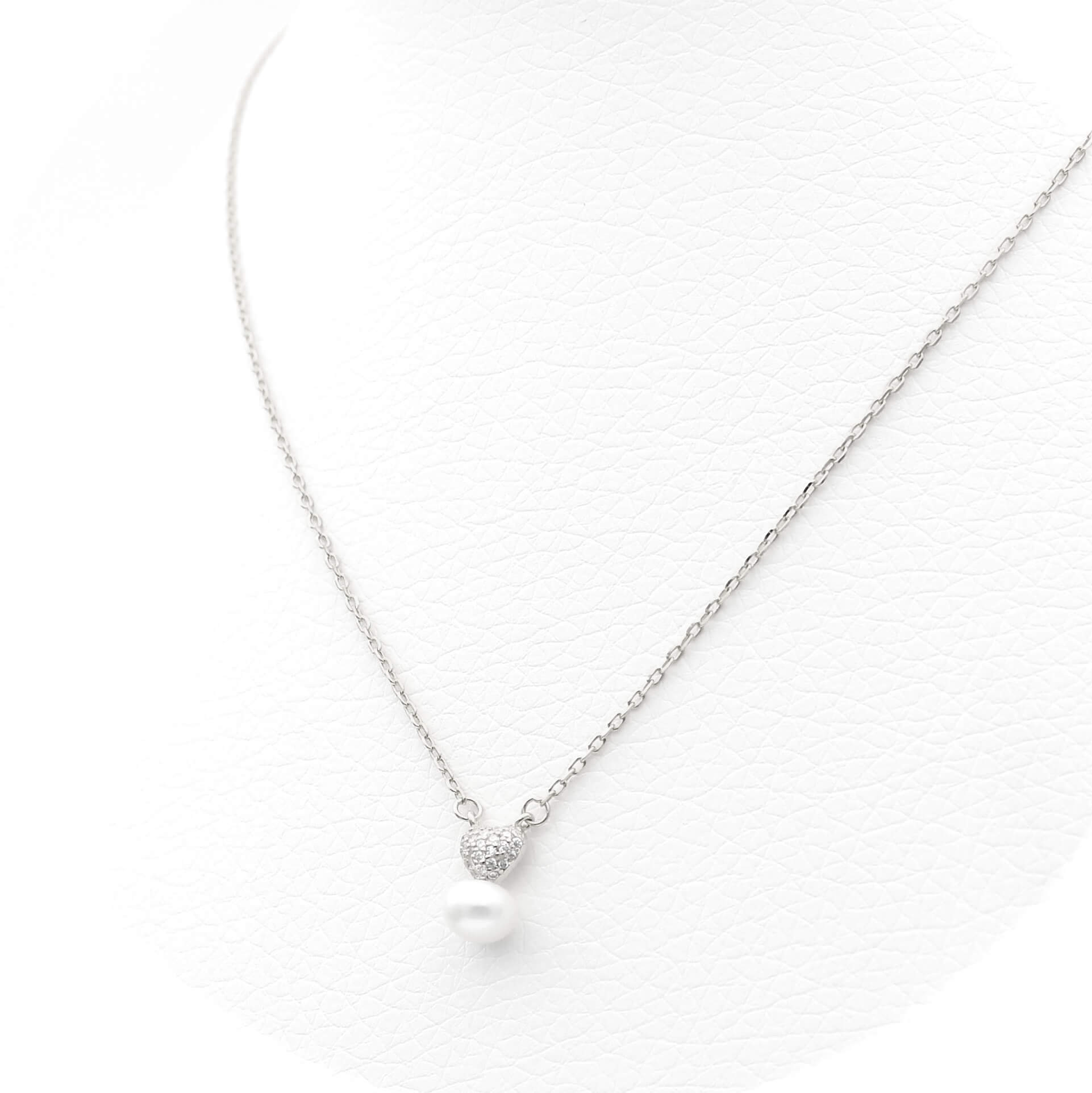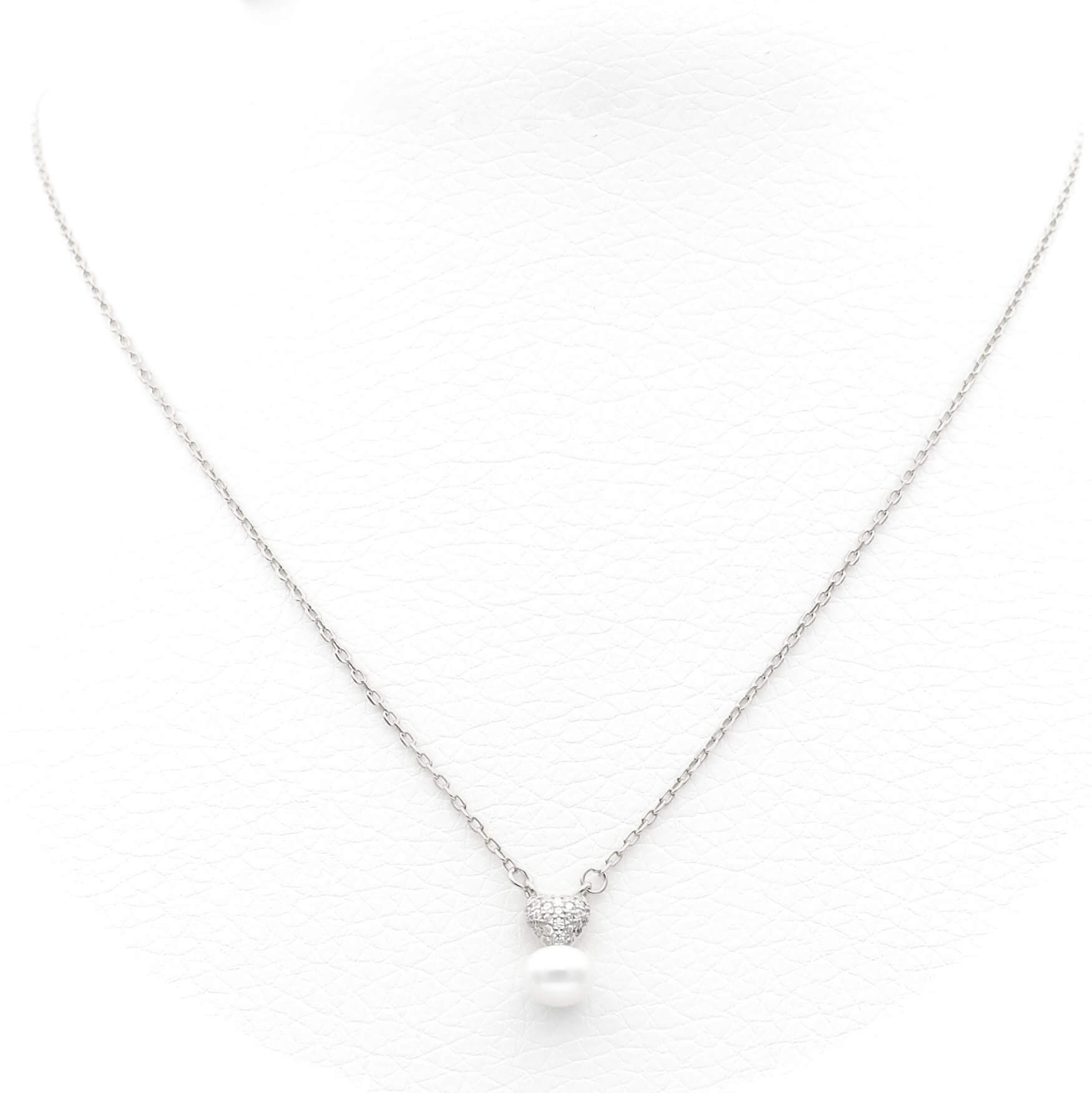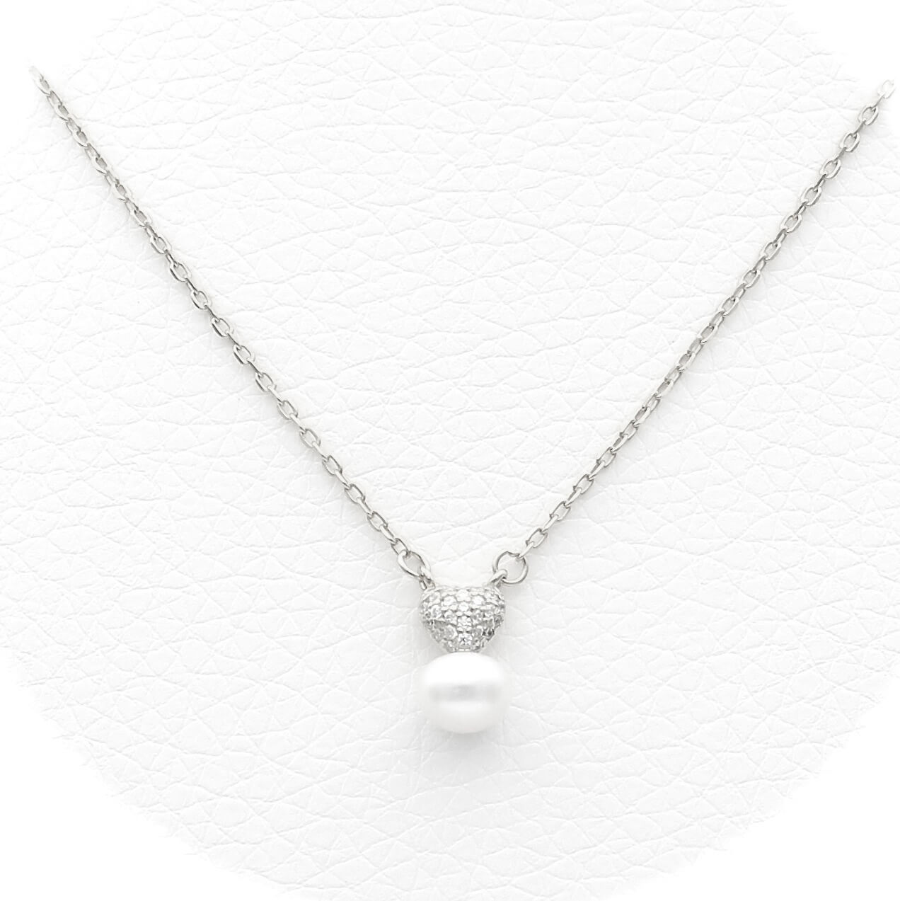 Ασημένιο κολιέ 925 με μαργαριτάρι και ζιργκόν
