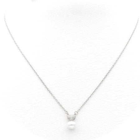 Ασημένιο γυναικείο επίχρυσο κολιέ 925 με μαργαριτάρι και ζιργκόν