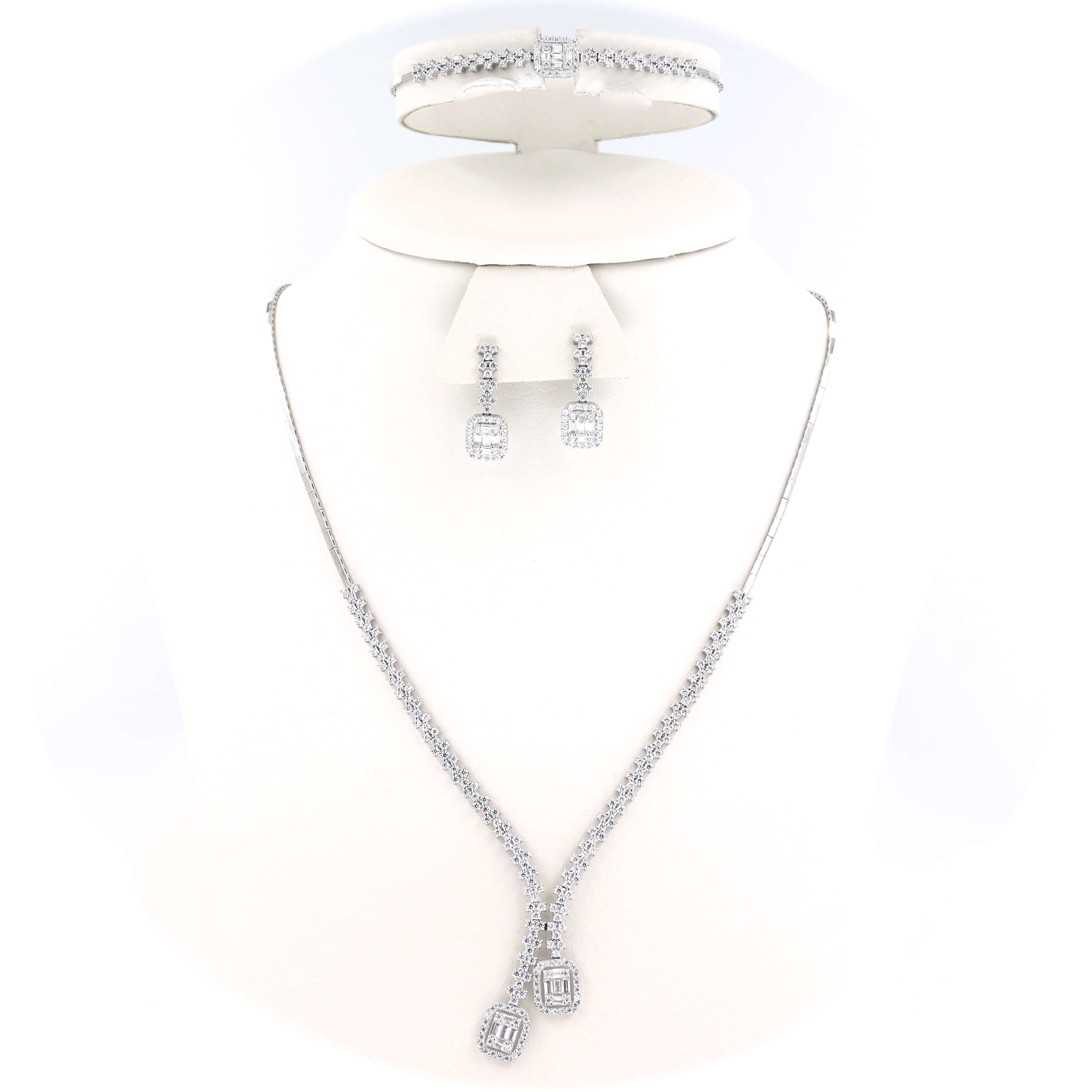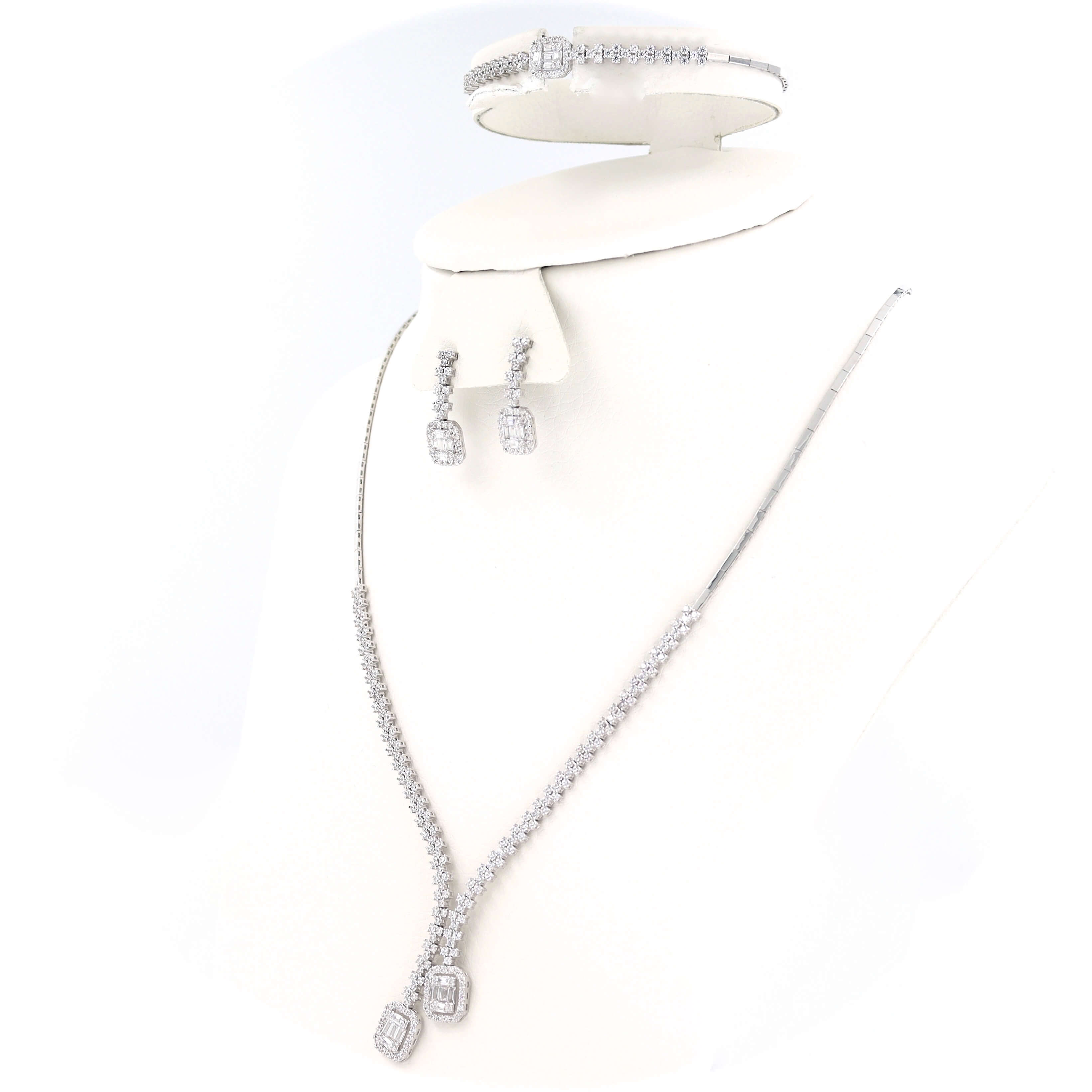 Τα κοσμήματα είναι διακοσμημένα με πέτρες ζιργκόν σε λευκό χρώμα