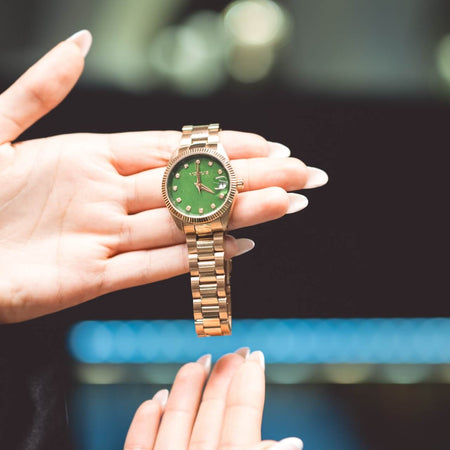 Ρολόι Vogue από την σειρά "Reina" με δίχρωμο μπρασελέ και πράσινο καντράν