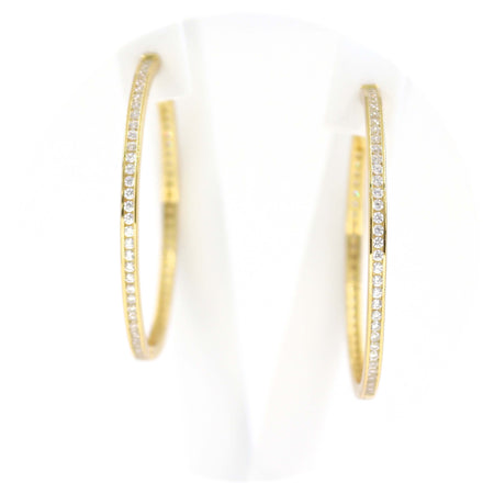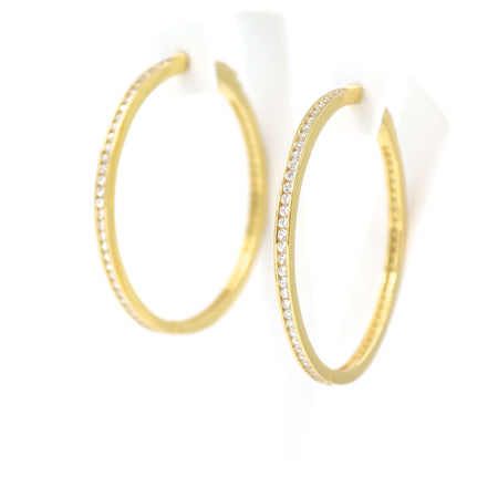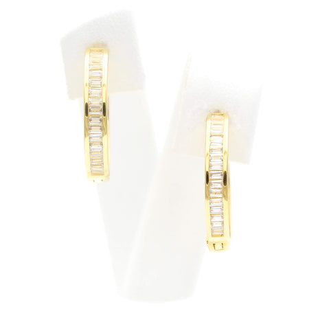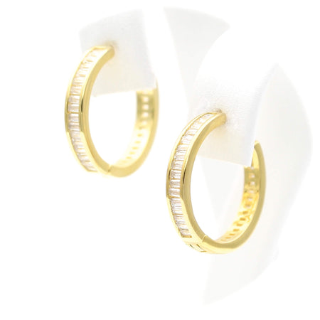 Ασημένια επιχρυσωμένα σκουλαρίκια κρίκοι διακοσμημένα από λευκές πέτρες ζιργκόν