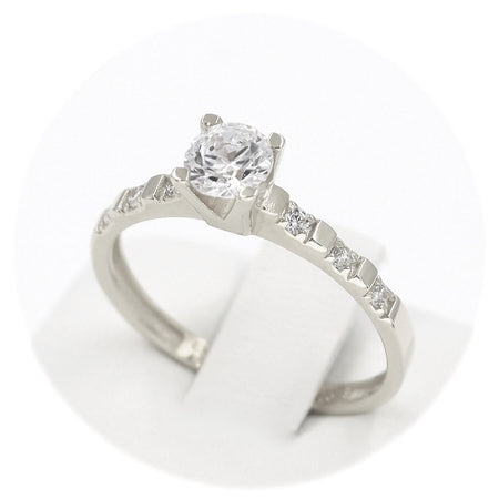 Λευκόχρυσο μονόπετρο δαχτυλίδι 9 καρατίων με λευκές πέτρες ζιργκόν