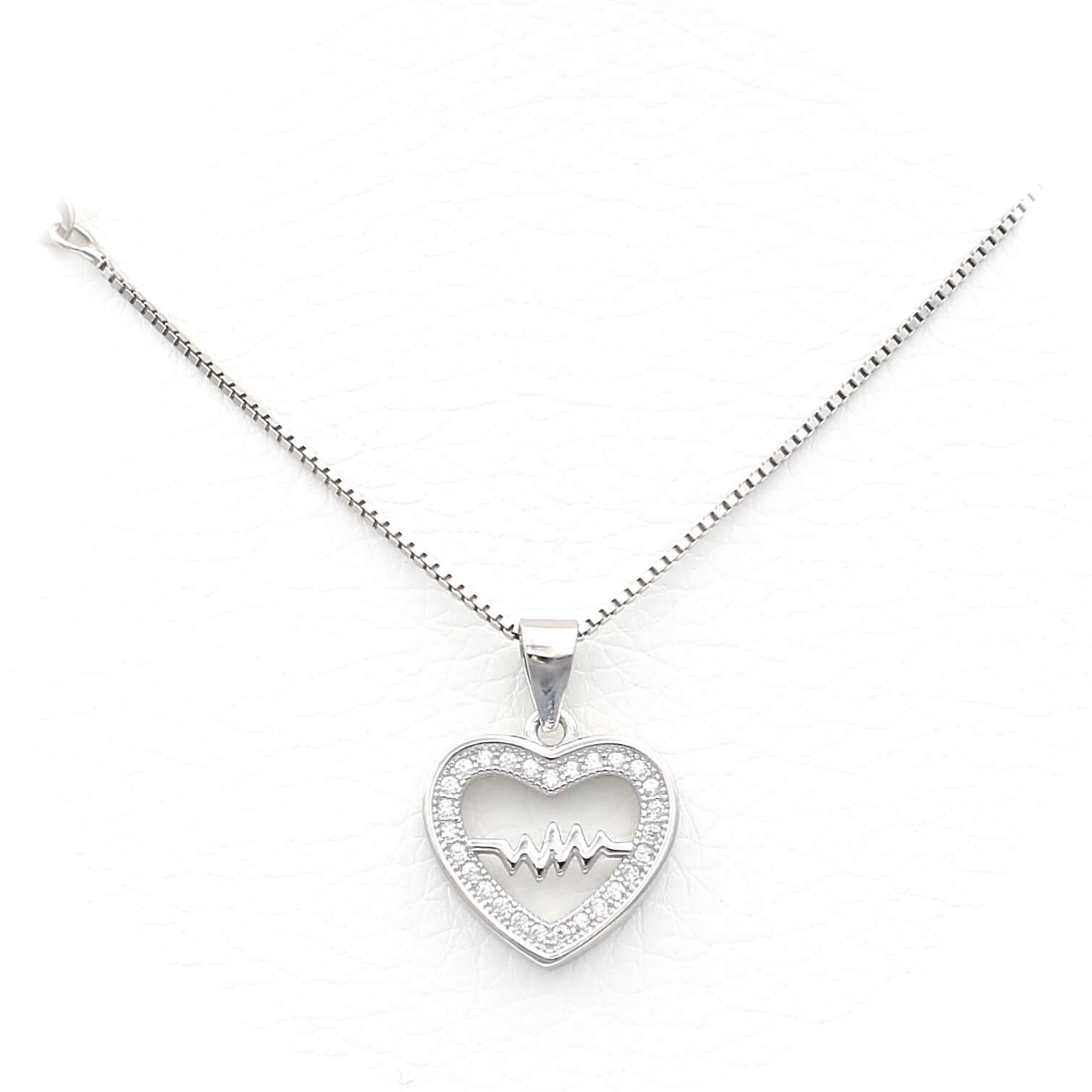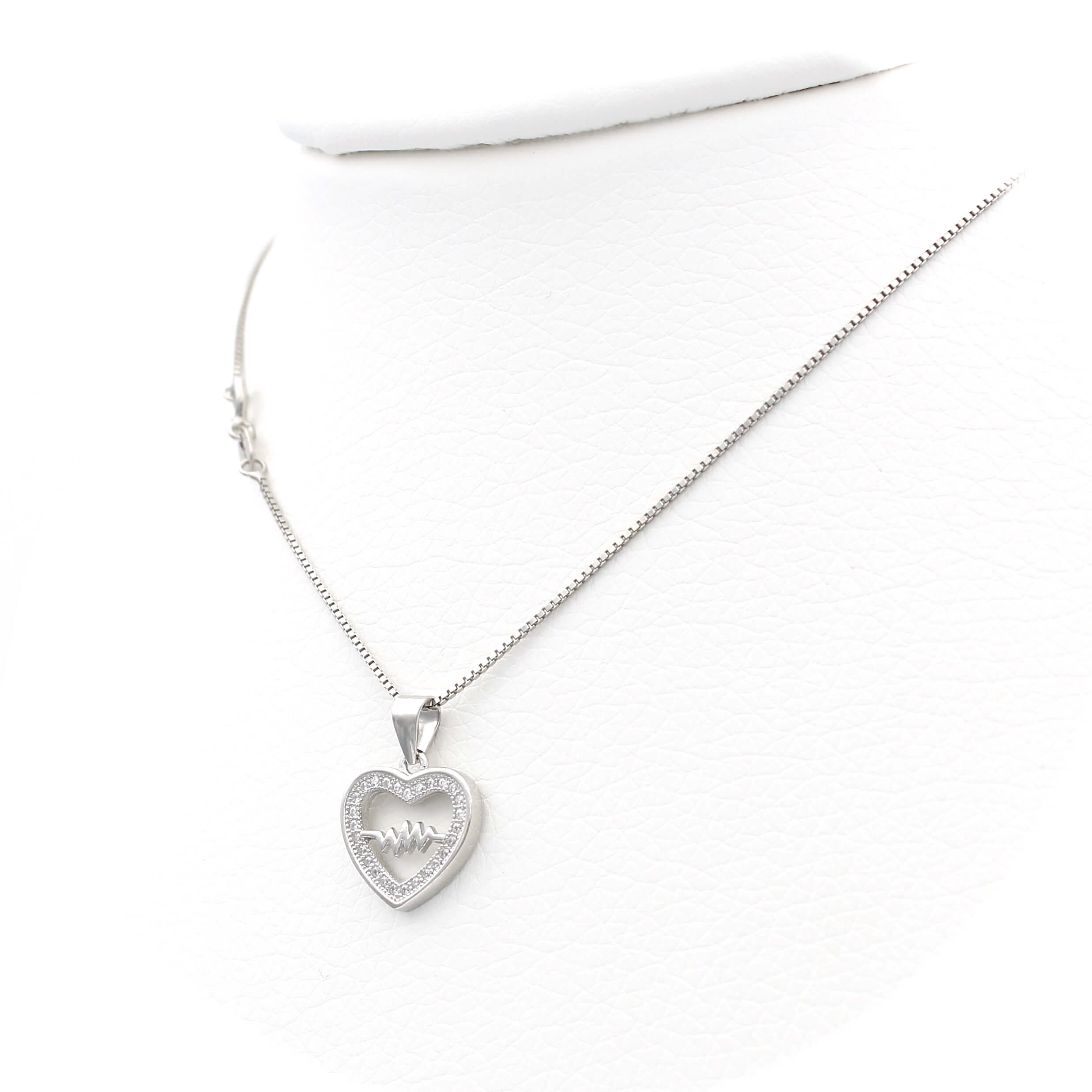 Ασημένιο επιπλατινωμένο κολιέ με μοτίφ καρδιά