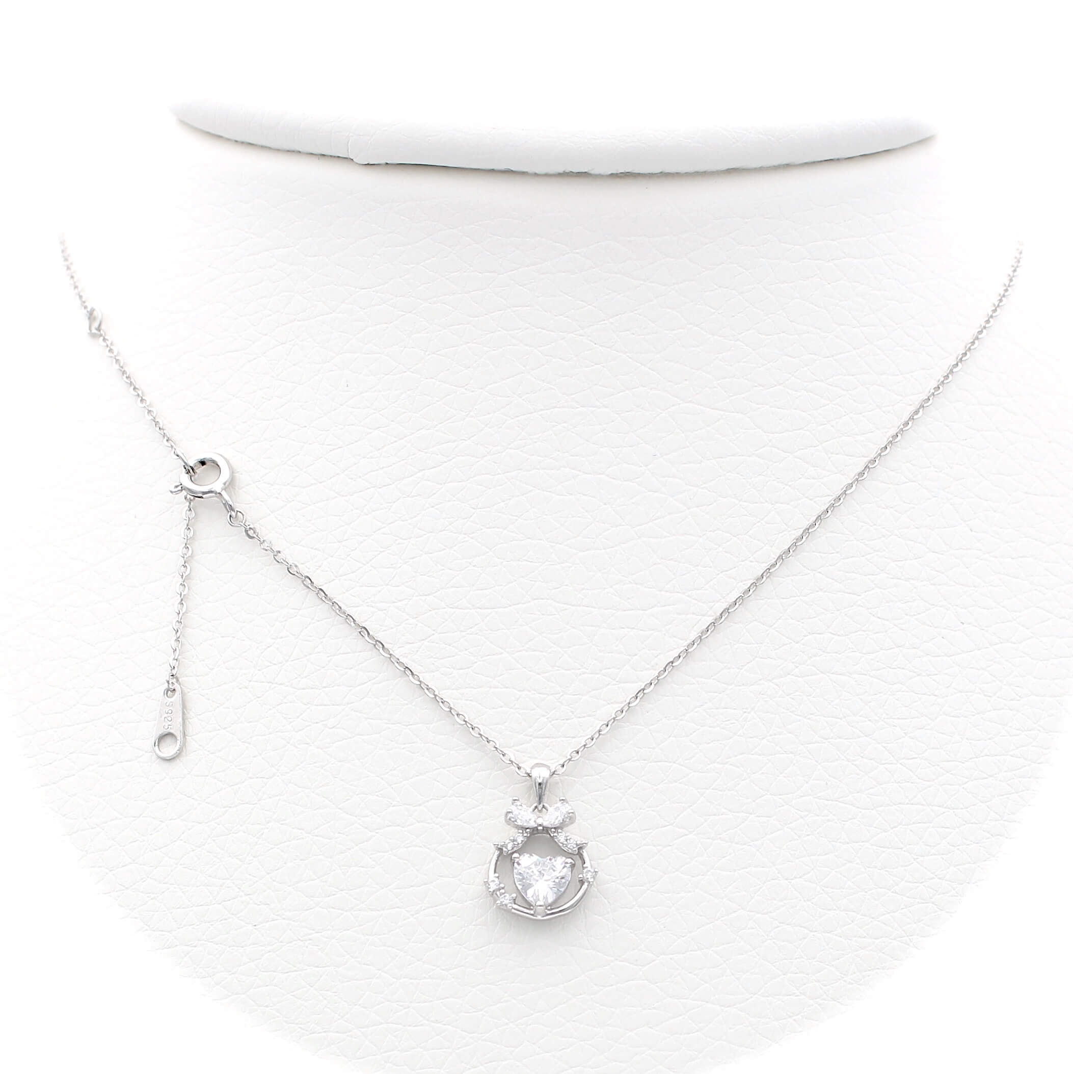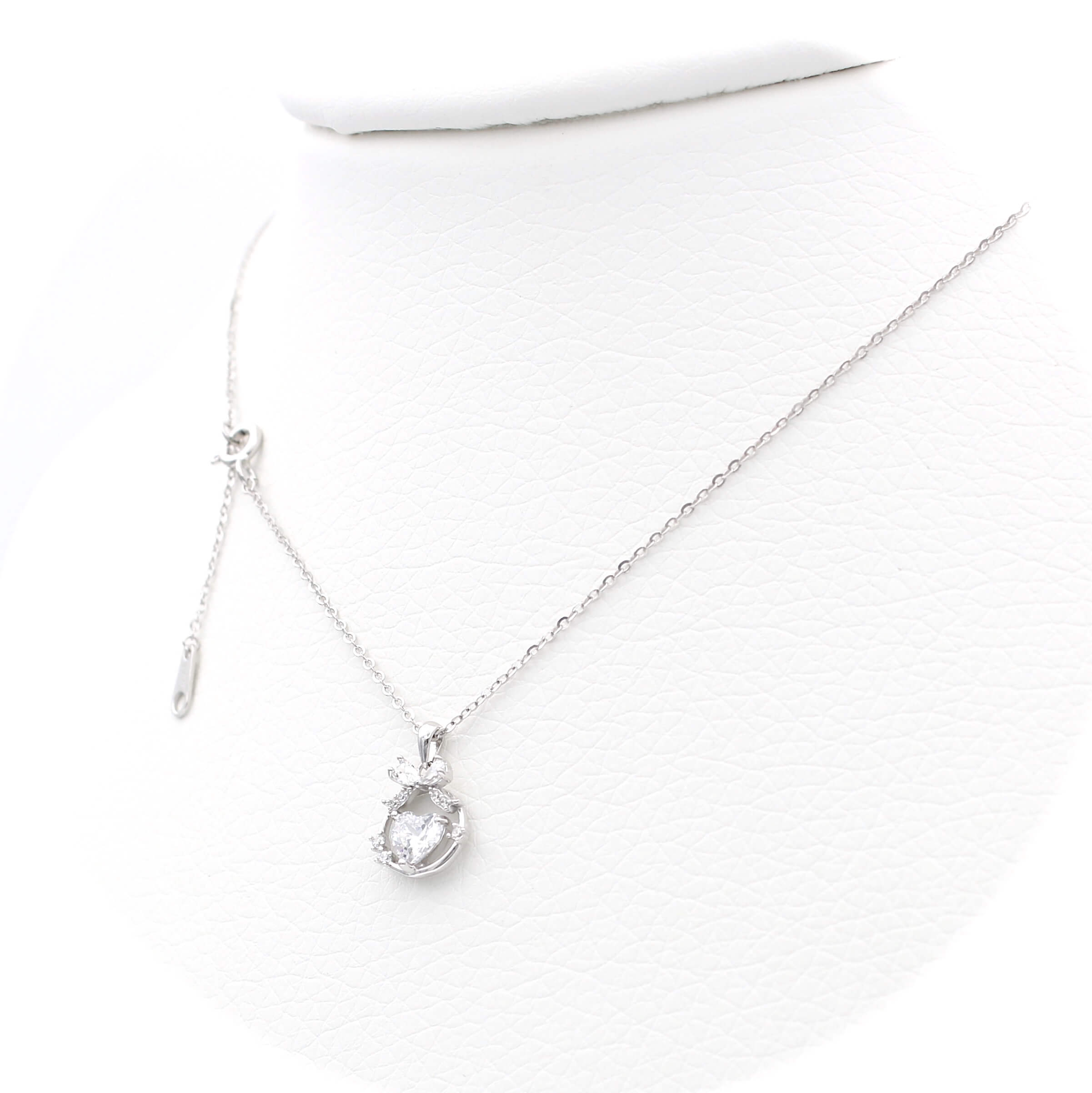 Ασημένιο επιπλατινωμένο κολιέ με μοτίφ φιόγκο και καρδιά