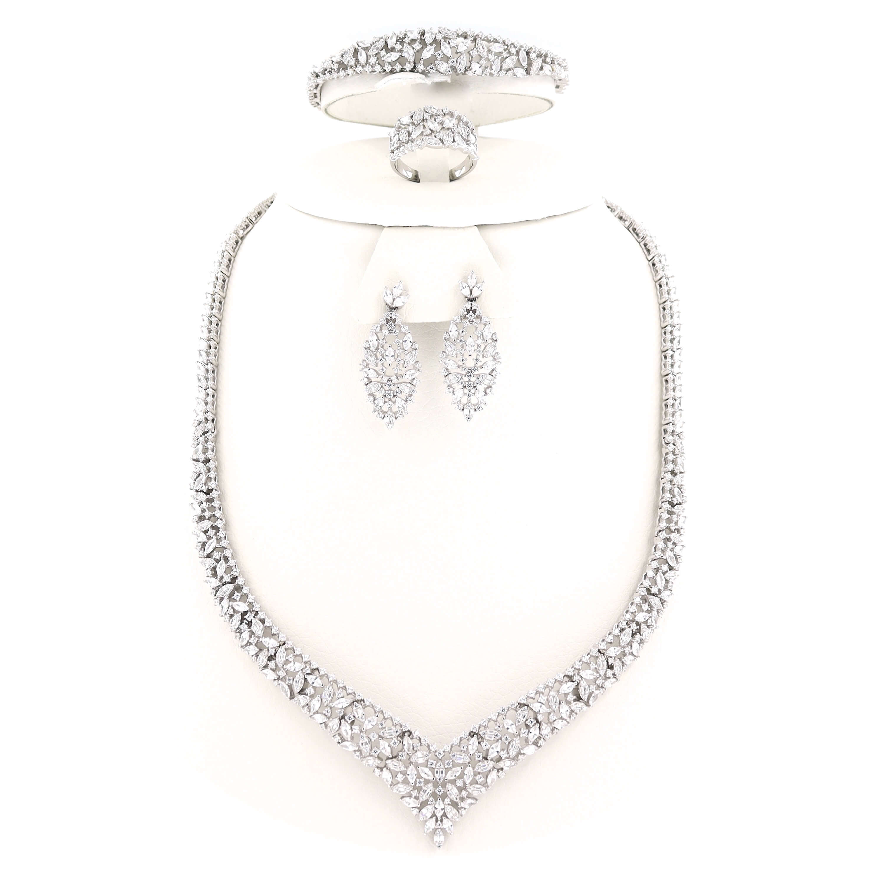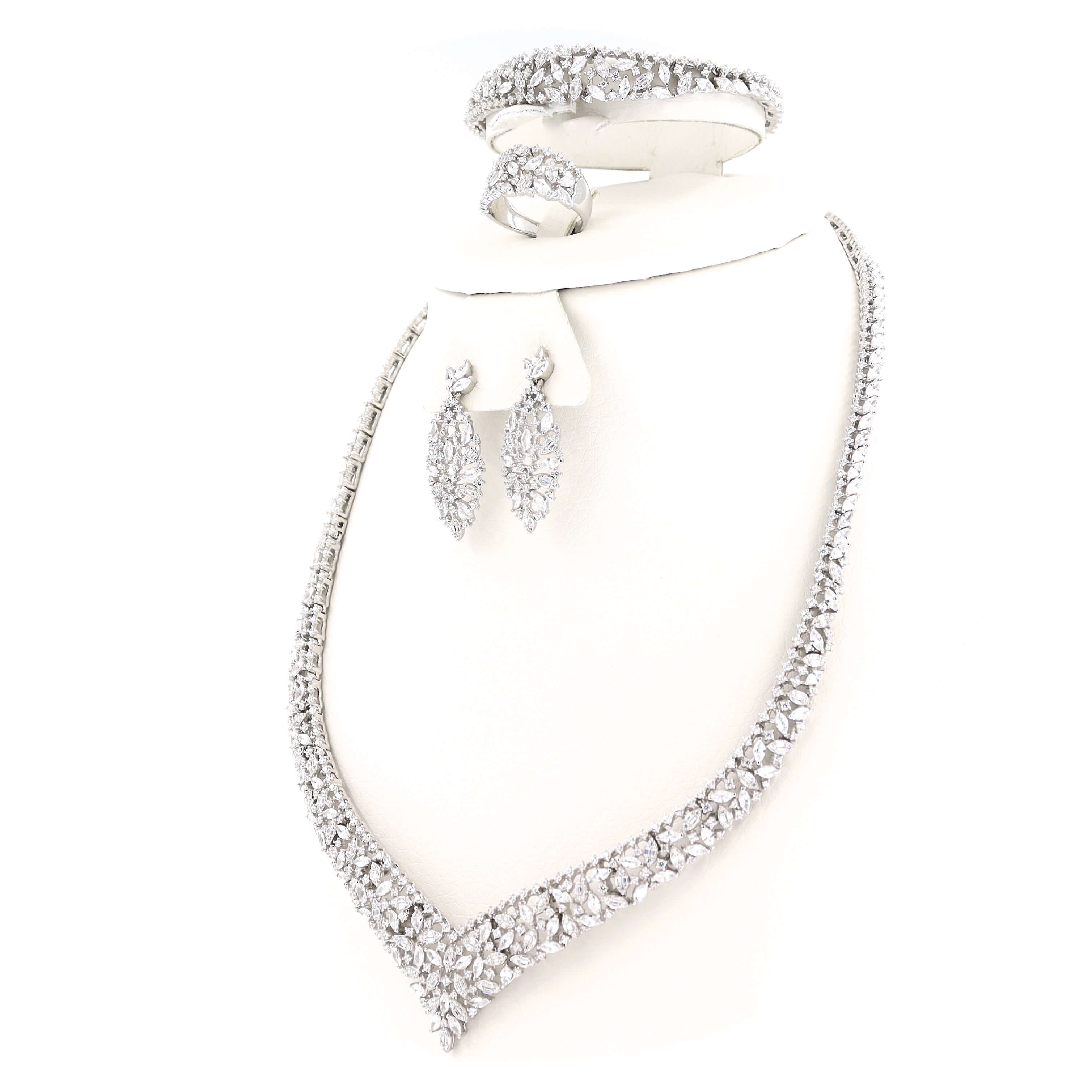 Ασημένιο επιπλατινωμένο σετ διακοσμημένο από λευκές πέτρες ζιργκόν