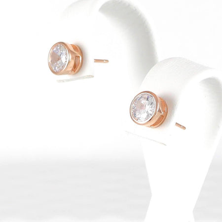 Ασημένια σκουλαρίκια σε ροζ χρυσό χρώμα με πέτρες ζιργκόν