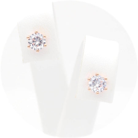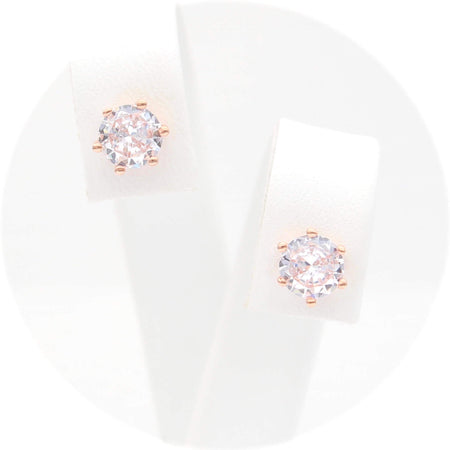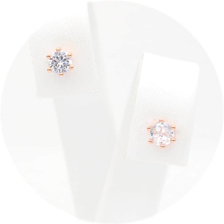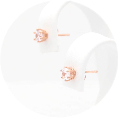Ασημένια σκουλαρίκια σε ροζ χρυσό χρώμα με πέτρες ζιργκόν 3.00mm