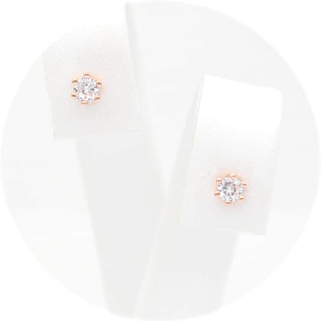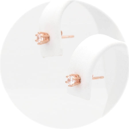 Ασημένια σκουλαρίκια σε ροζ χρυσό χρώμα με πέτρες ζιργκόν 4.00mm