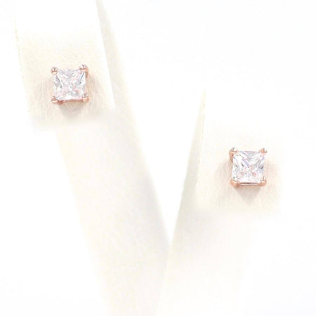 Ασημένια σκουλαρίκια σε ρόζ χρυσό χρώμα με καρέ λευκές πέτρες ζιργκόν