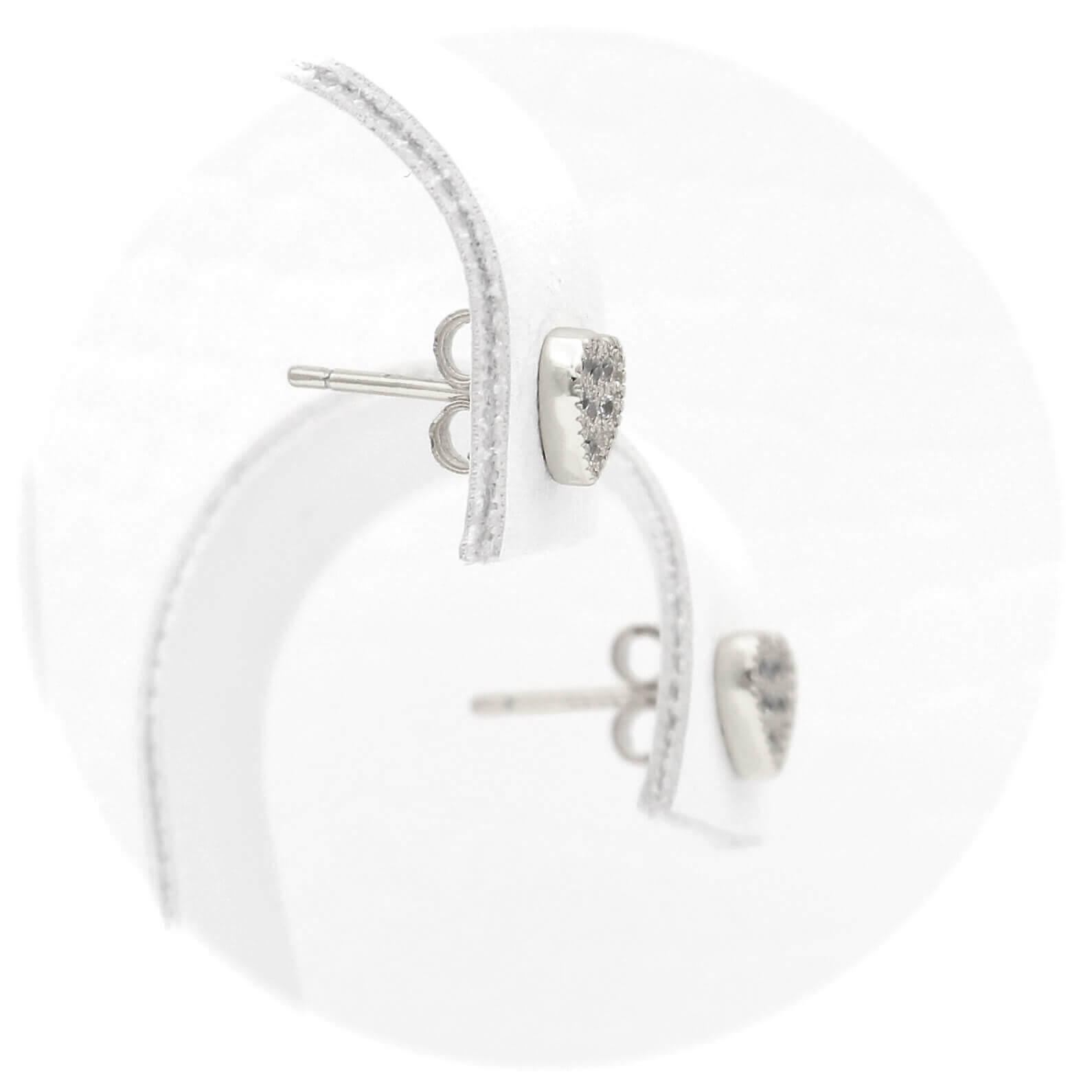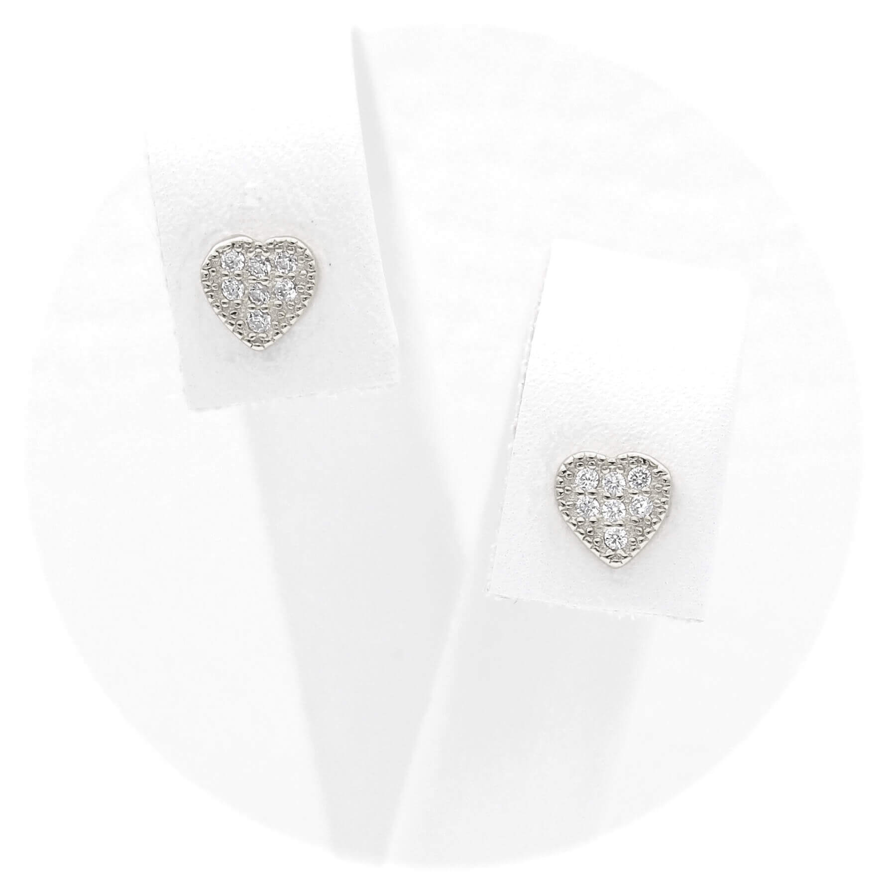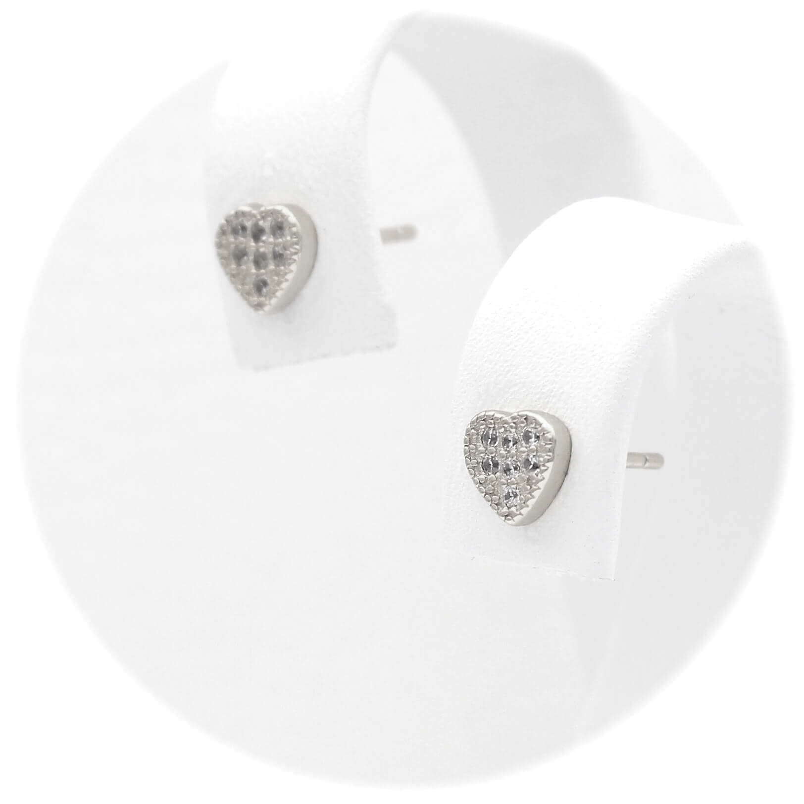 Ασημένια επιπλατινωμένα σκουλαρίκια σε σχήμα καρδιάς με πέτρες ζιργκόν