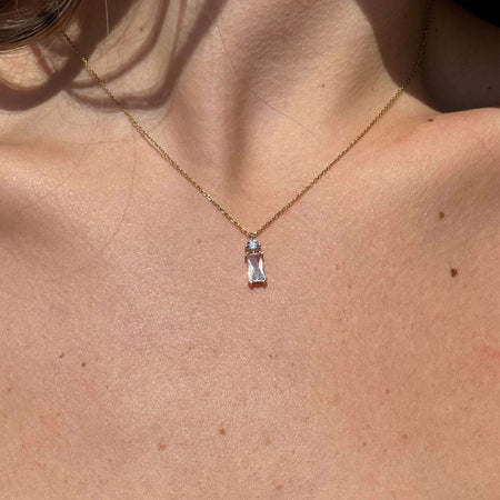 Τα σκουλαρίκια είναι διακοσμημένα από ορθογώνιες και στρόγγυλες λευκές πέτρες ζιργκόν