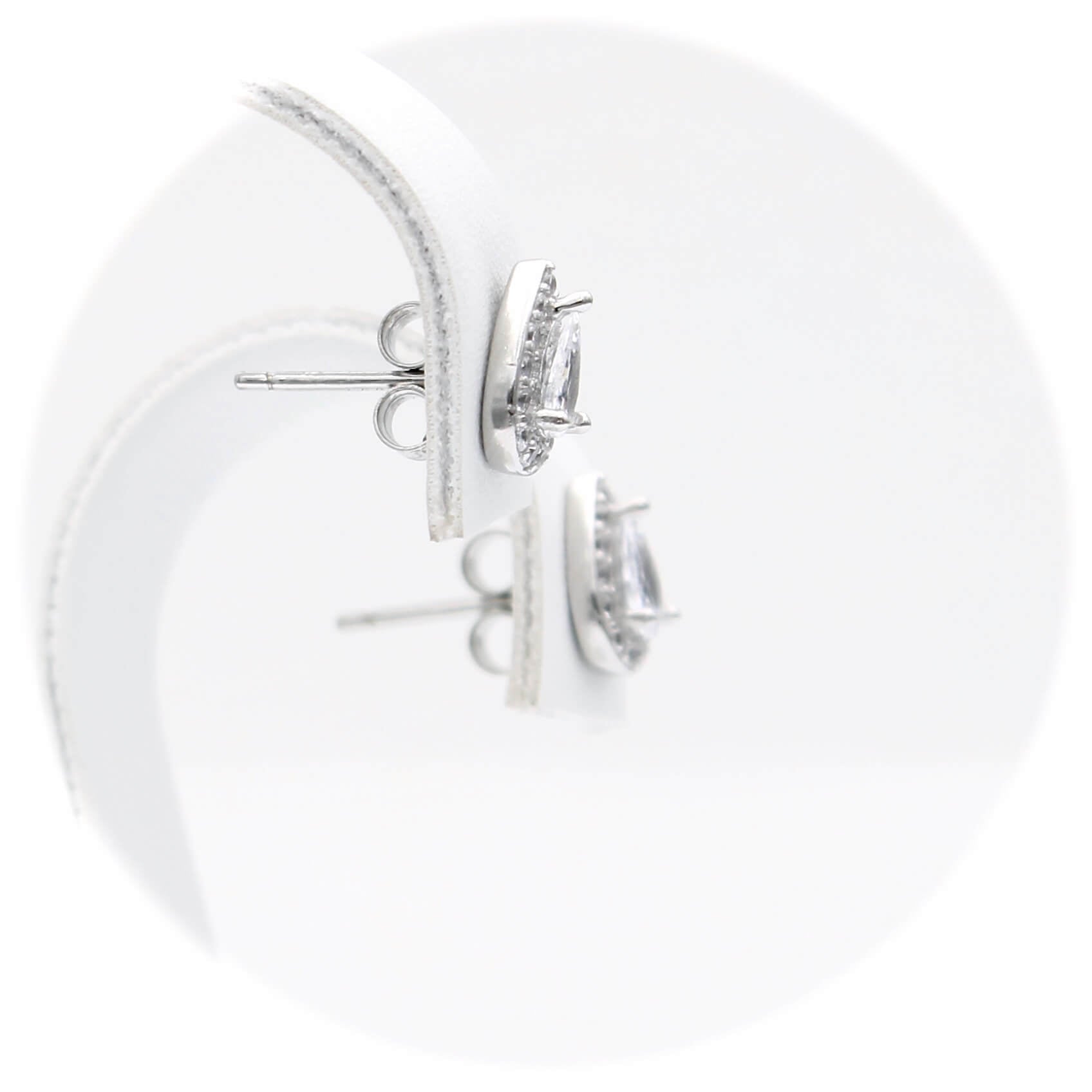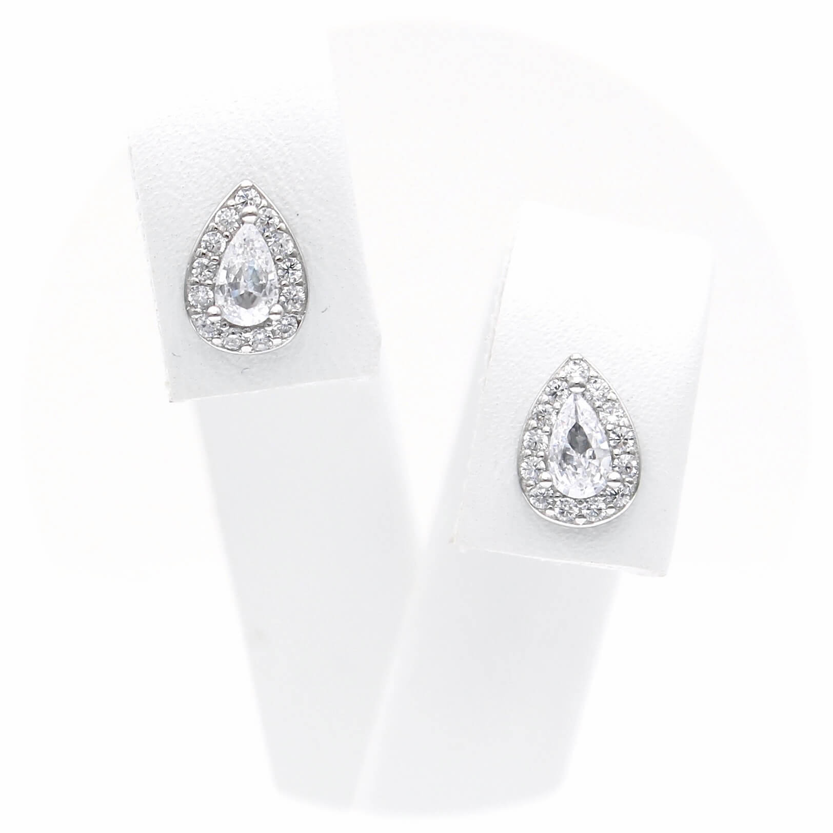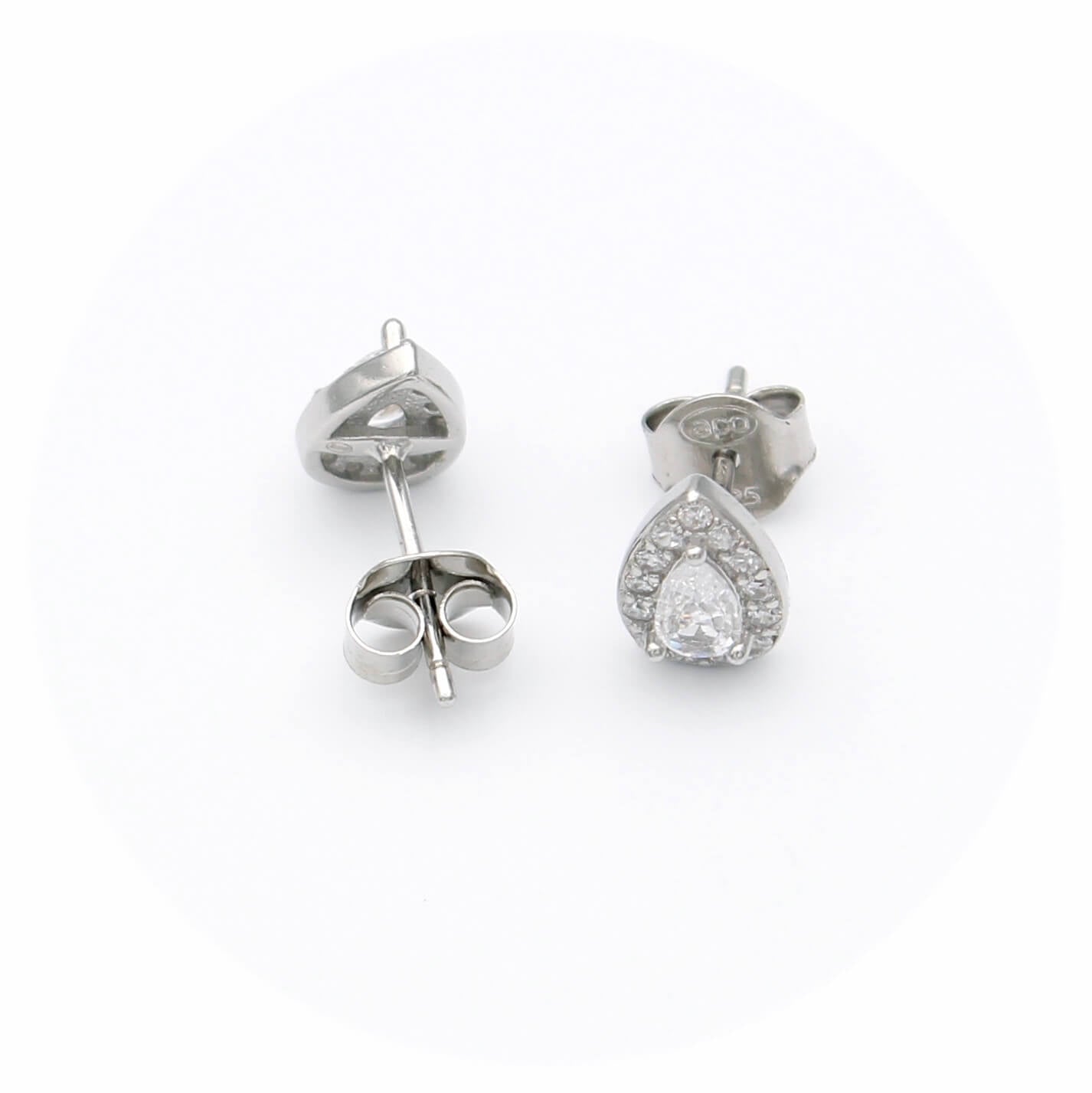 Ασημένια σκουλαρίκια ροζέτες σε σχήμα δάκρυ με λευκές πέτρες