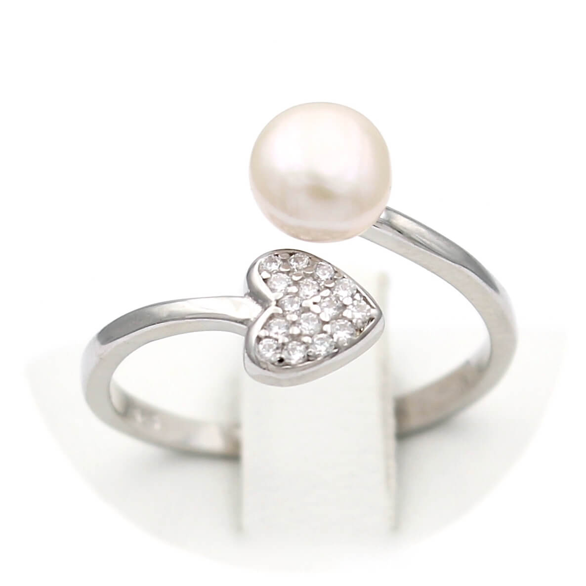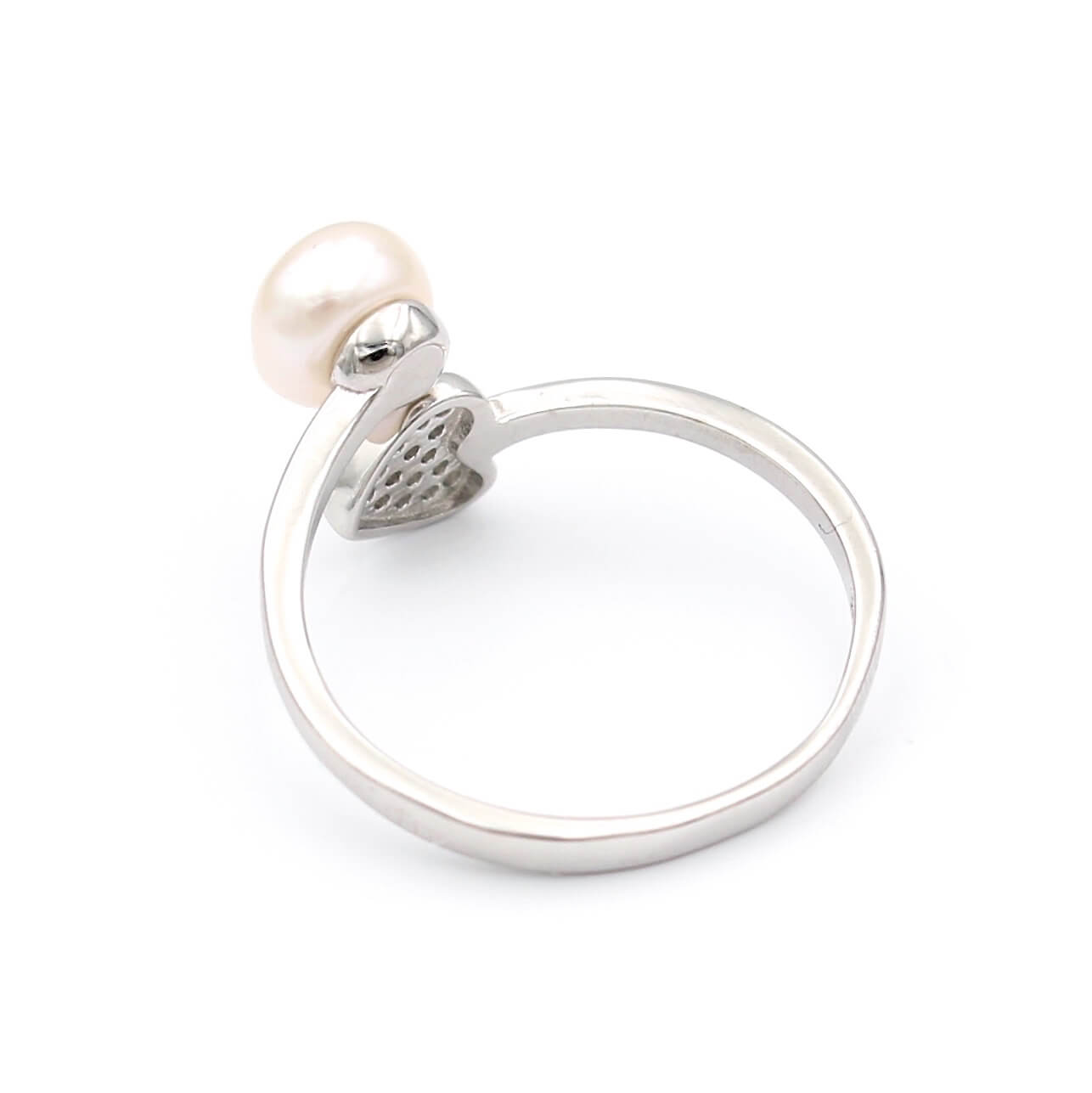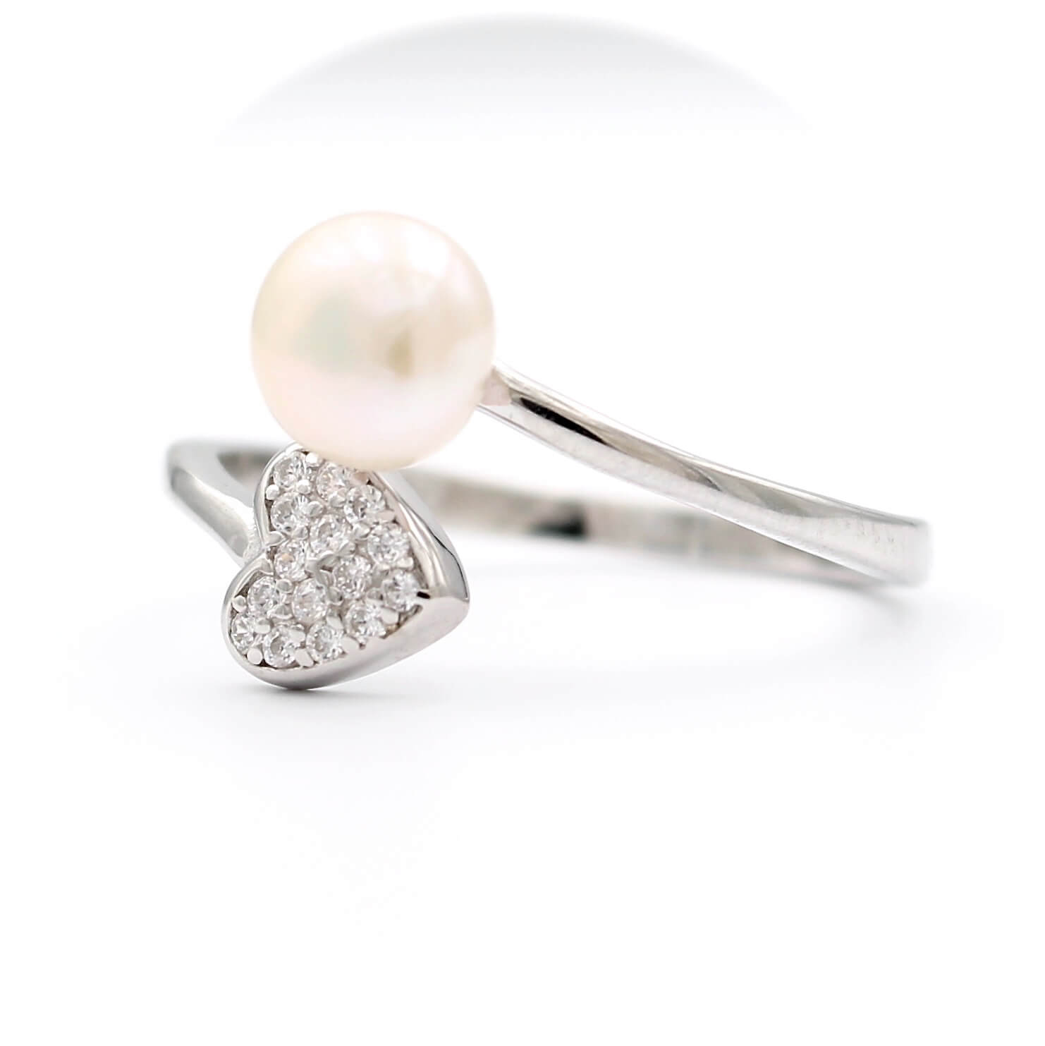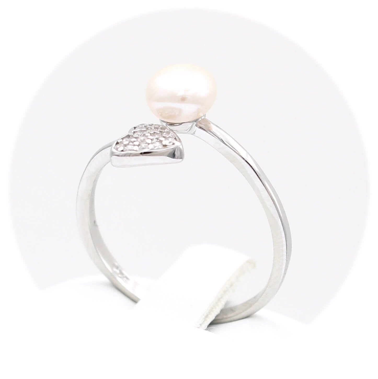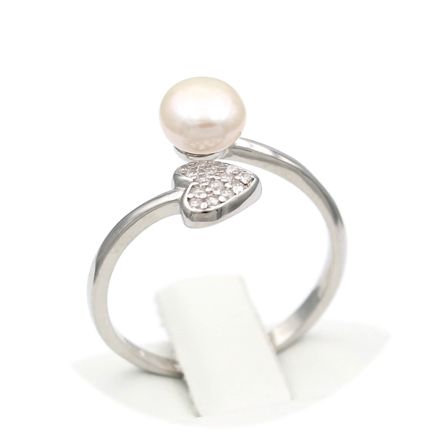 Ασημένιο επιπλατινωμένο δαχτυλίδι με καρδιά και μαργαριτάρι