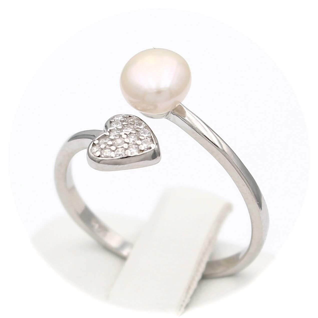 Ασημένιο δαχτυλίδι με καρδιά και μαργαριτάρι