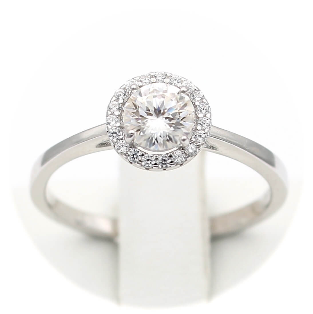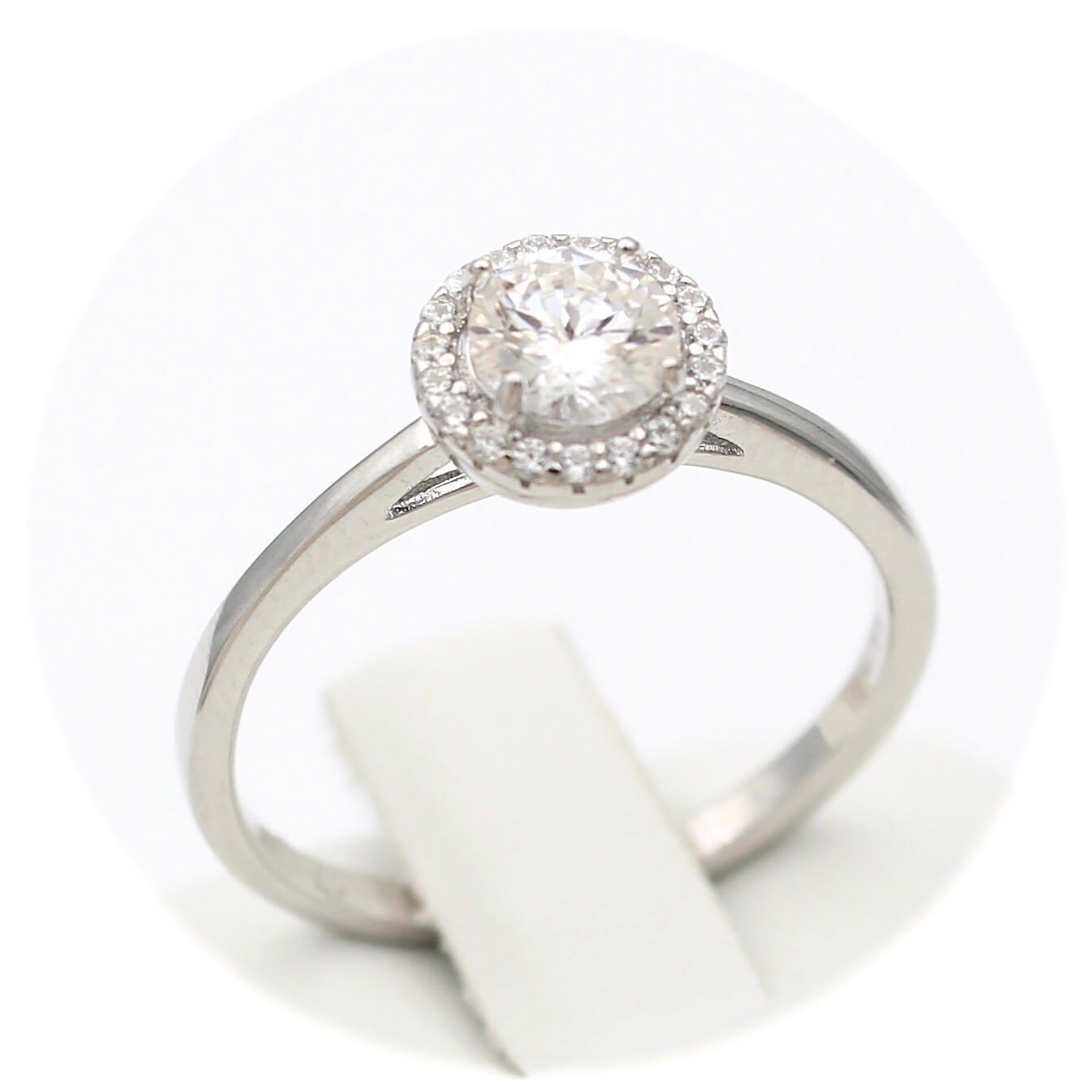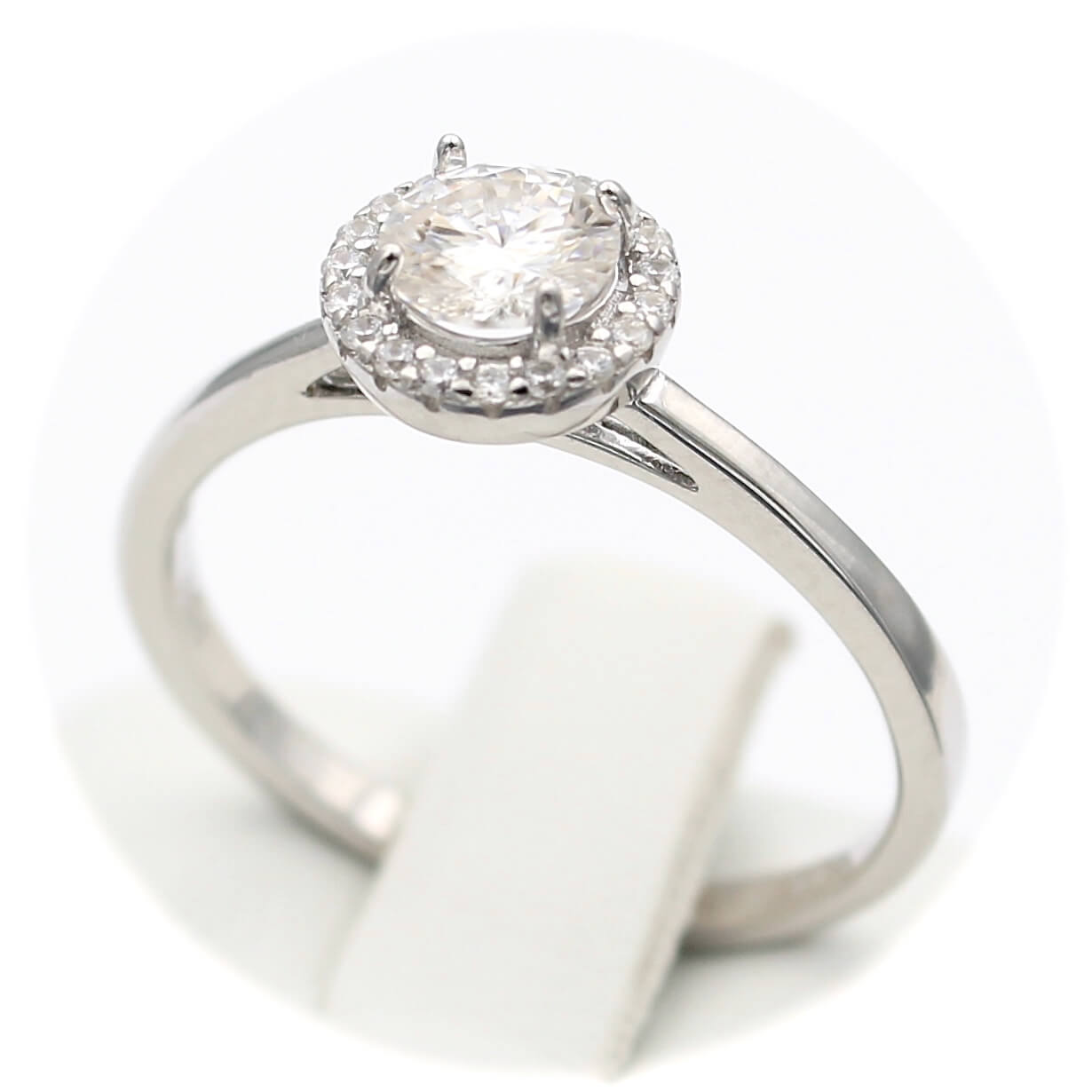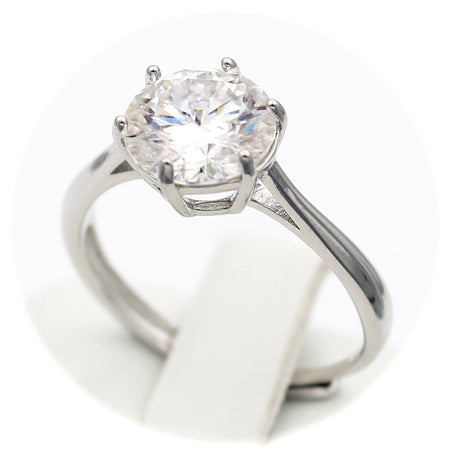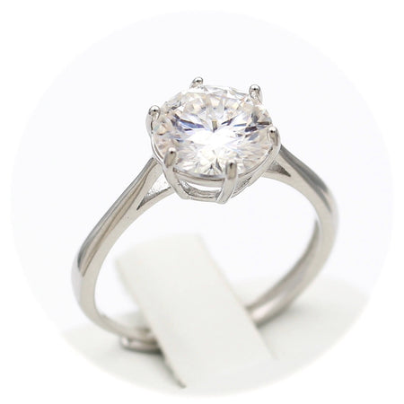 Ασημένιο επιπλατινωμένο γυναικείο δαχτυλίδι με κεντρική πέτρα μοϊσανίτη και λευκά ζιργκόν.