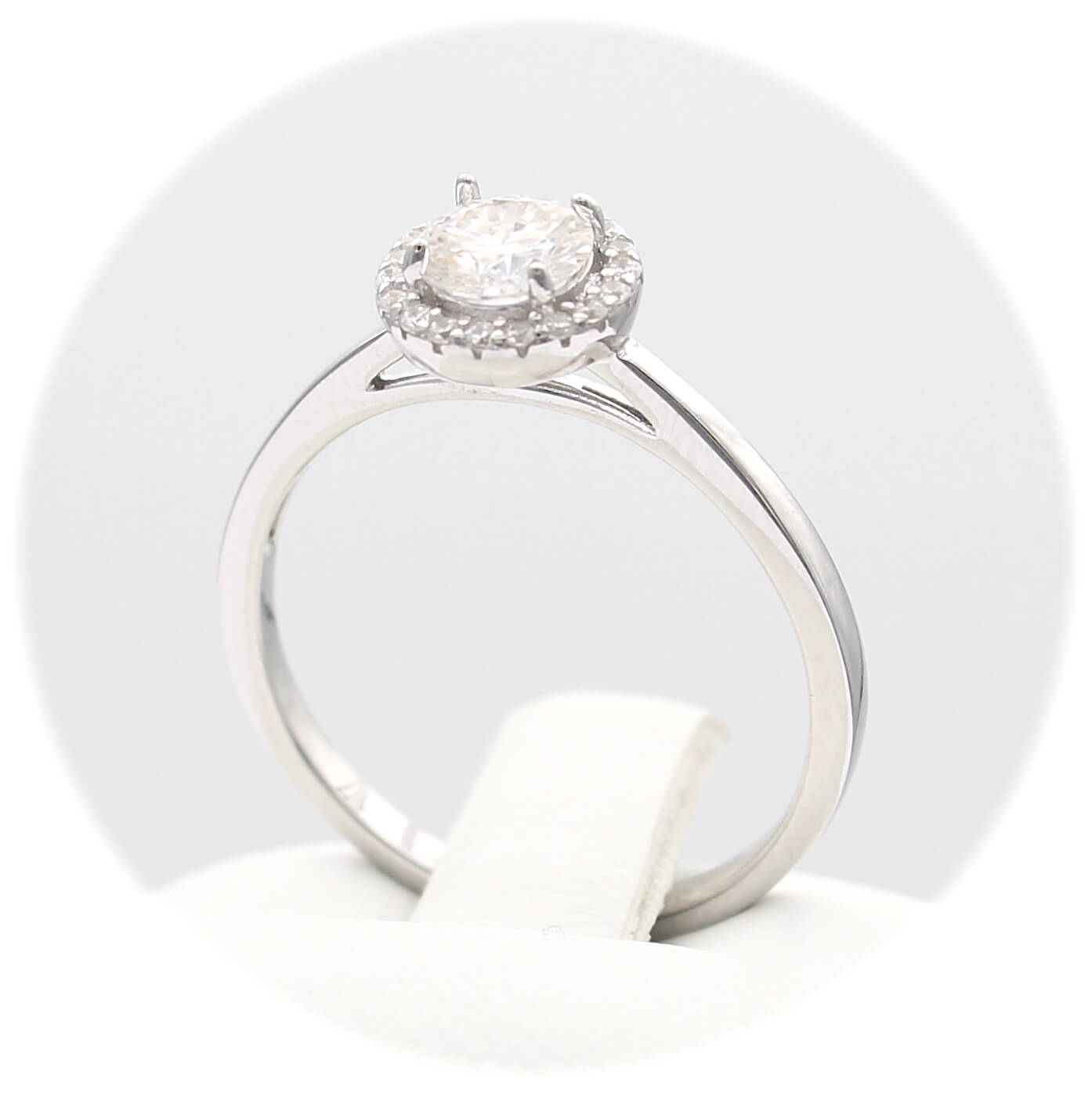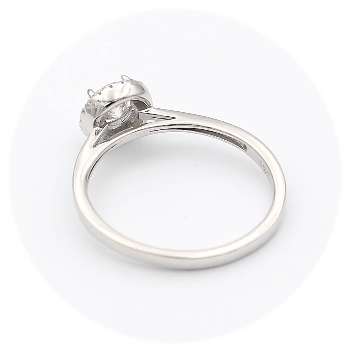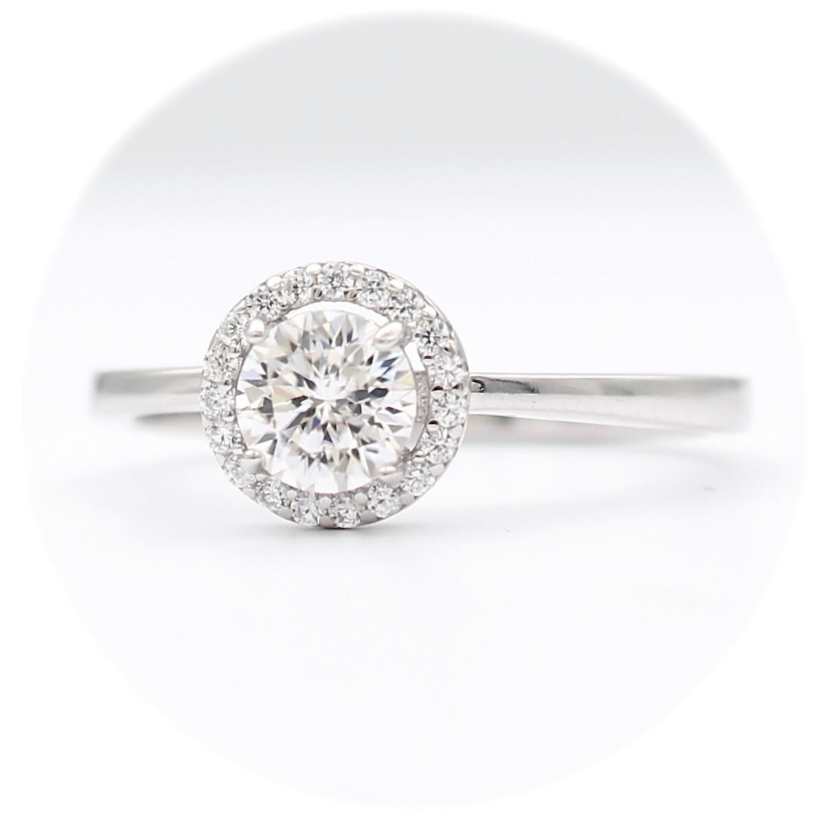 Ασημένιο επιπλατινωμένο γυναικείο δαχτυλίδι με κεντρική πέτρα μοϊσανίτη και λευκά ζιργκόν.