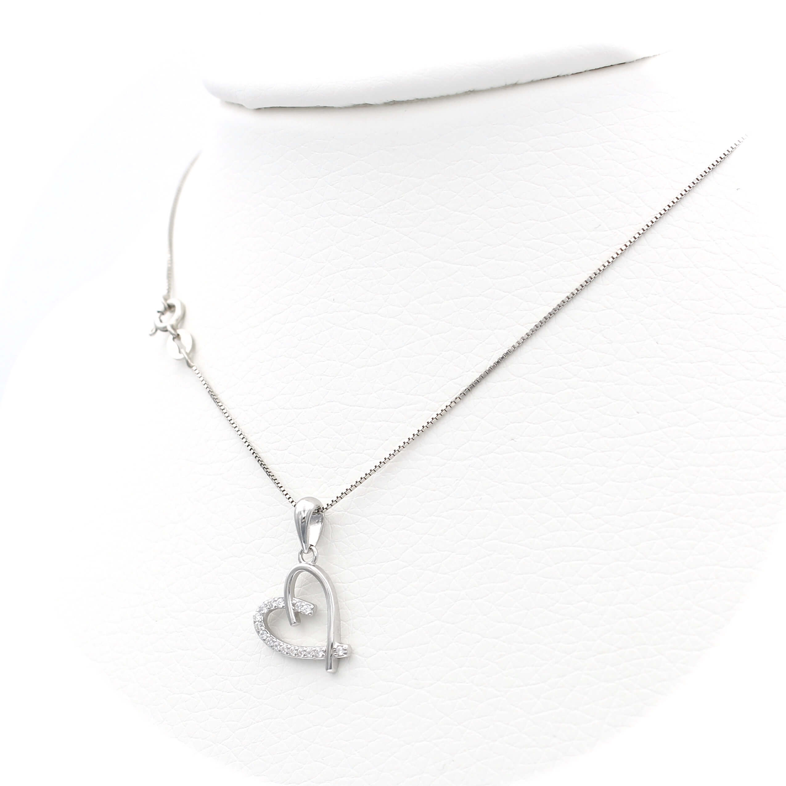 Ασημένιο επιπλατινωμένο γυναικείο κολιέ 925 με μοτίφ καρδιά