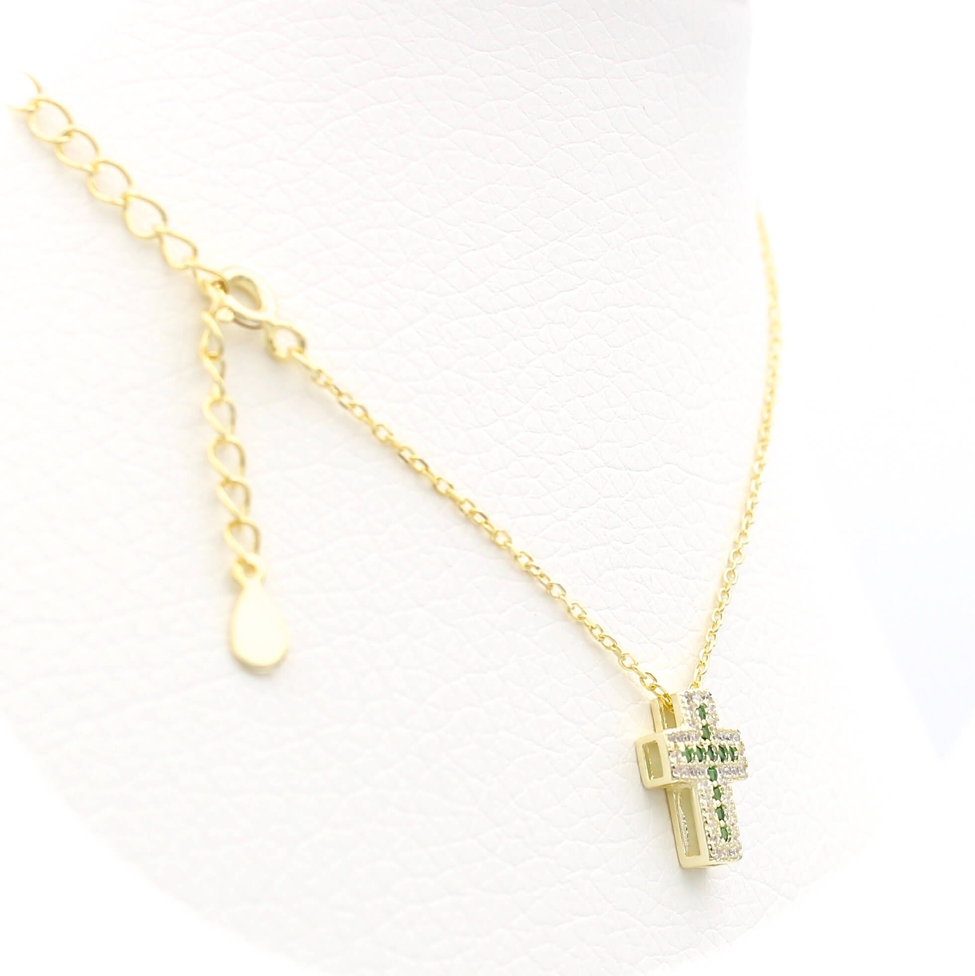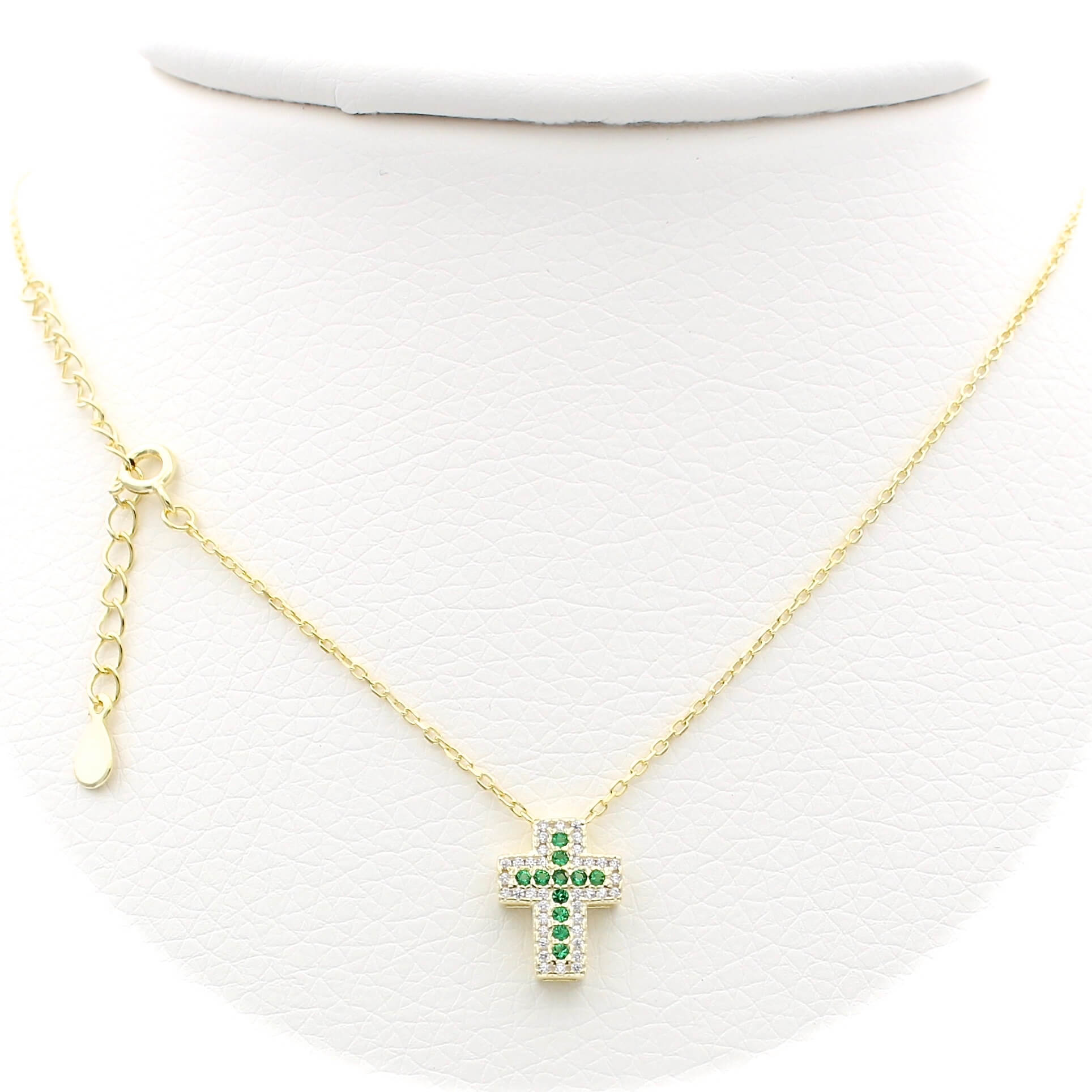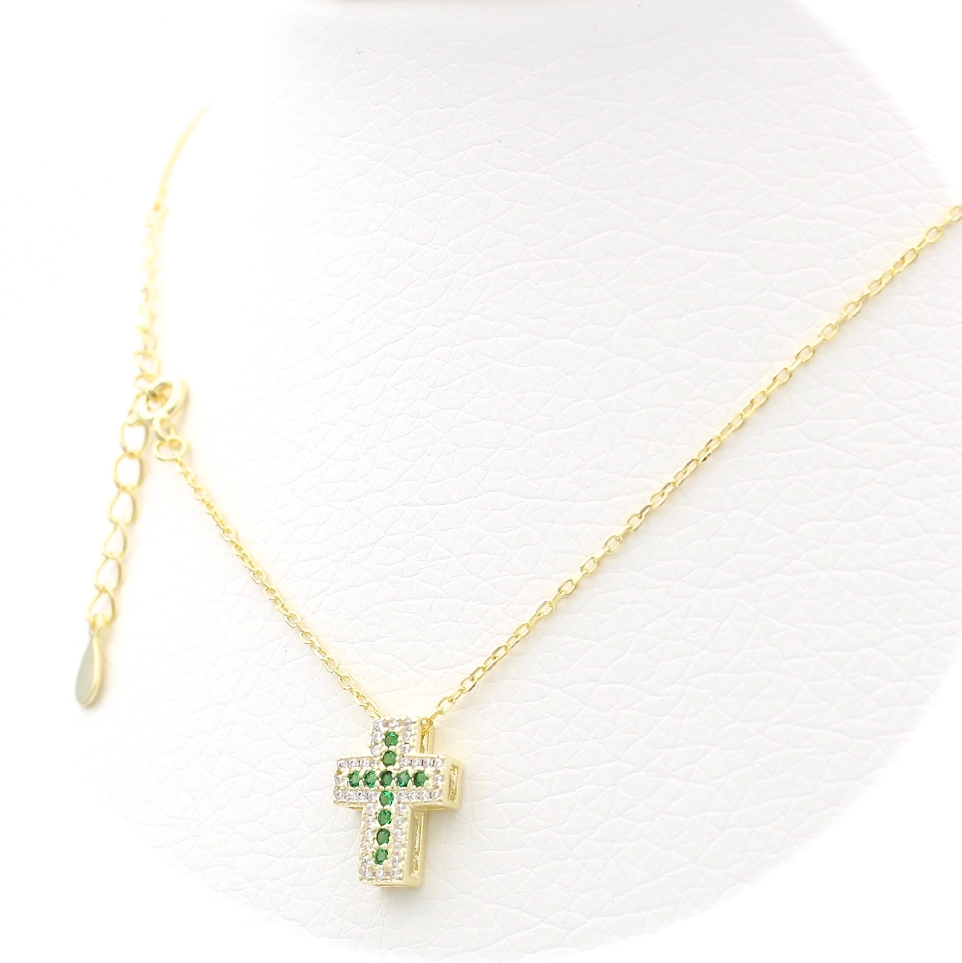 Ασημένιο κολιέ σταυρός με πράσινες πέτρες