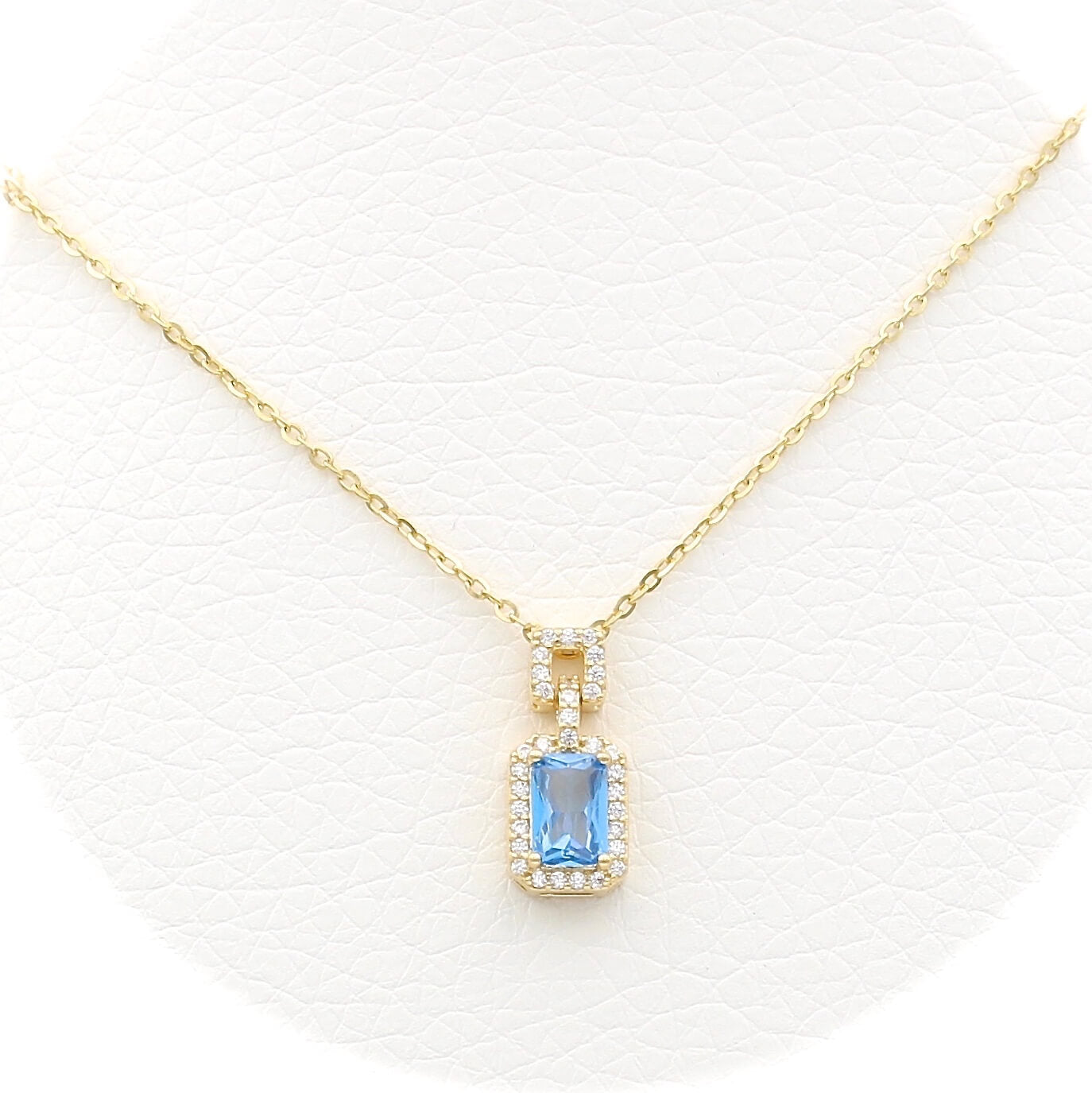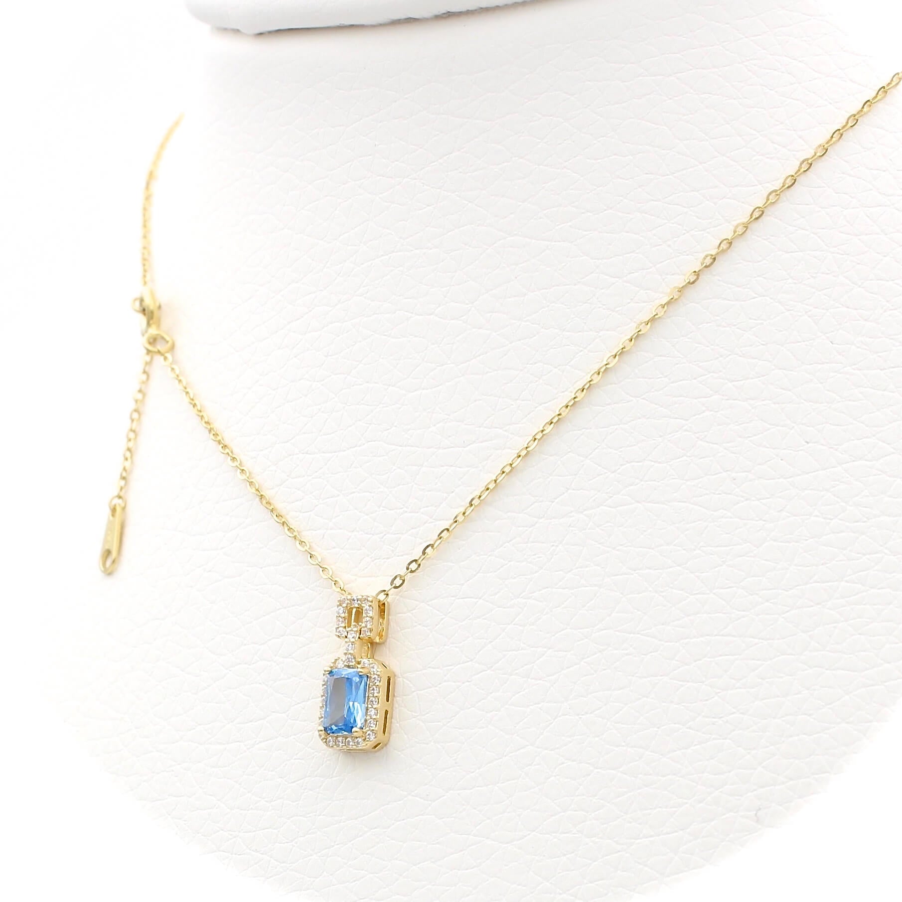 Το κολιέ είναι διακοσμημένο με μπλε και λευκές πέτρες ζιργκόν