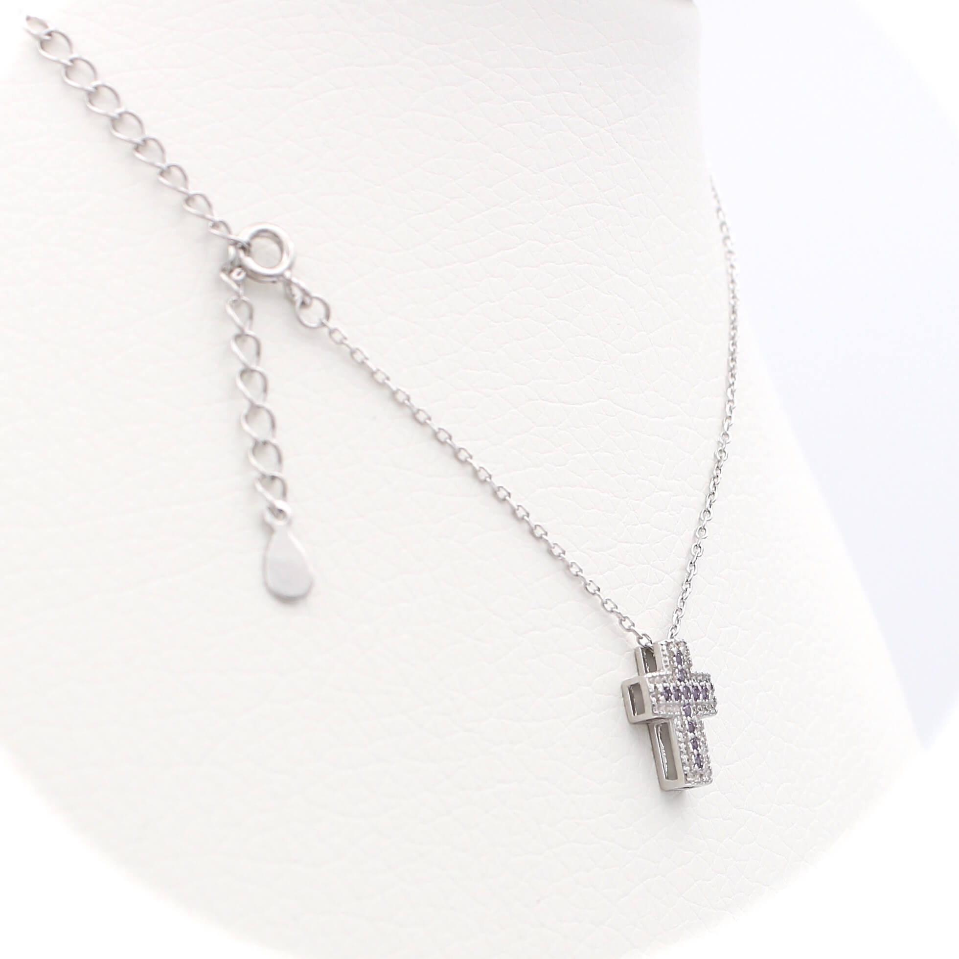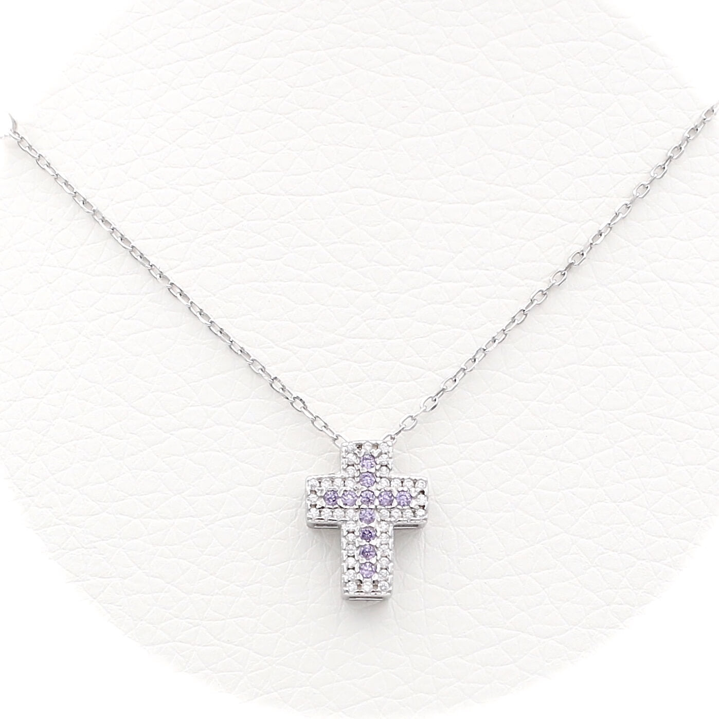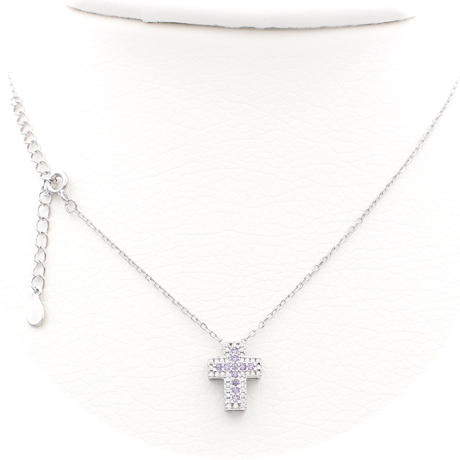 Ασημένιο επιπλατινωμένο κολιέ σταυρός με βιολετί πέτρες