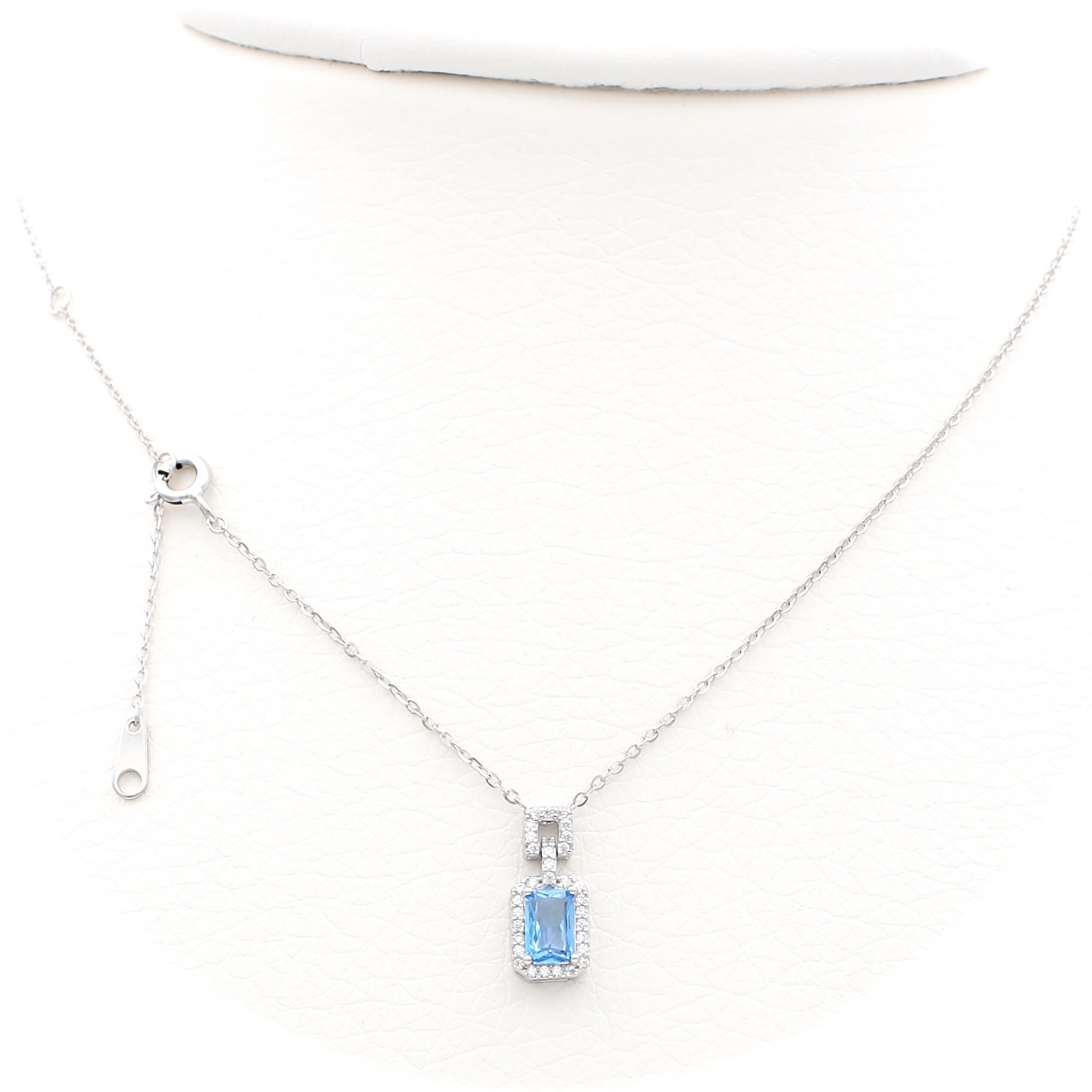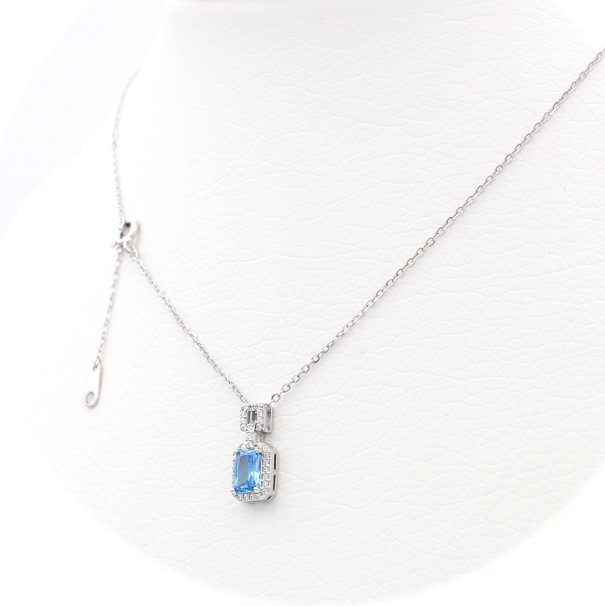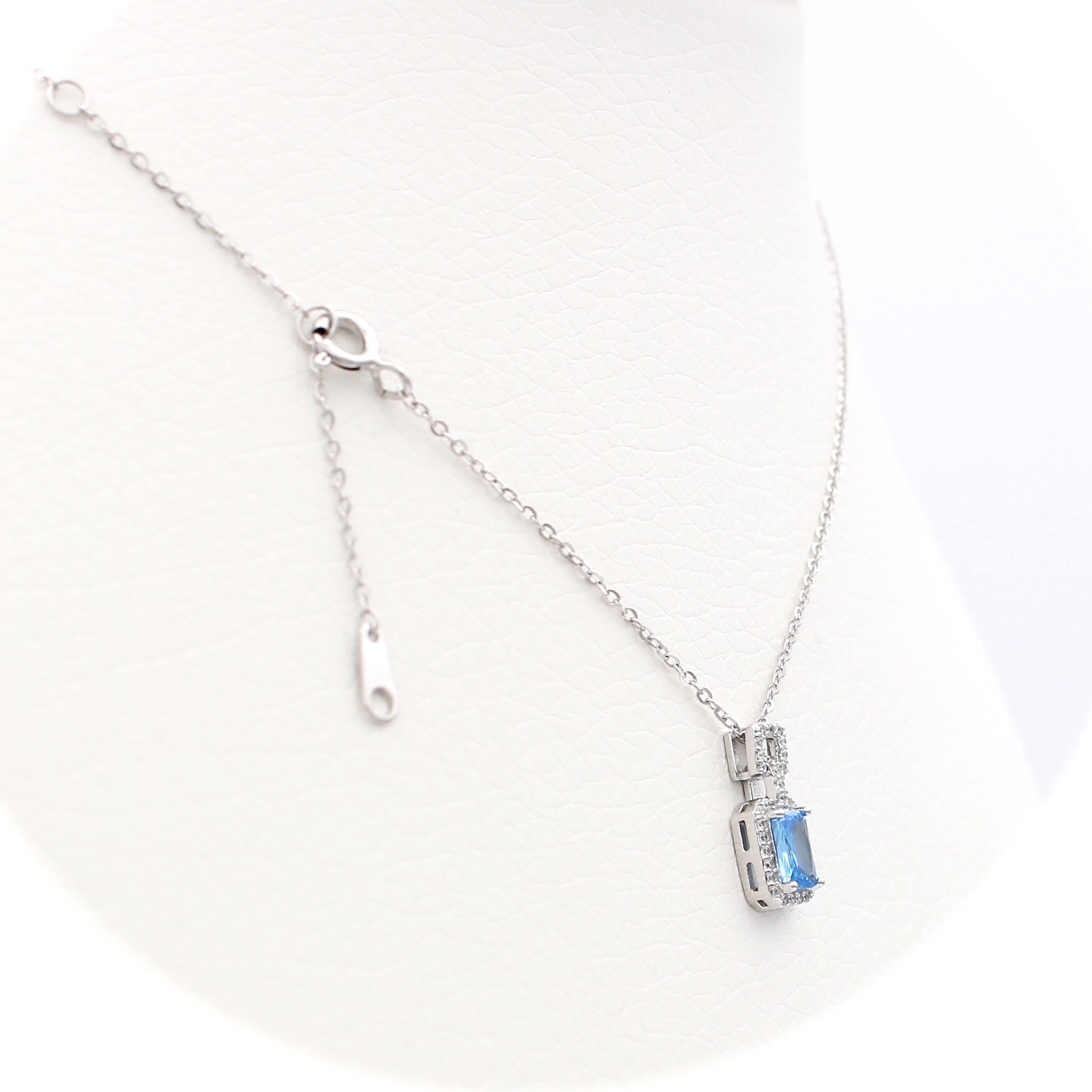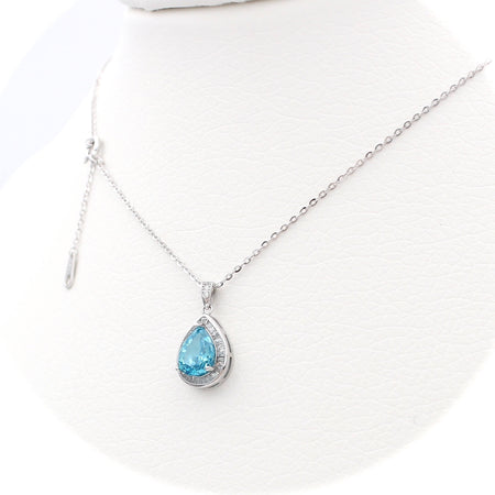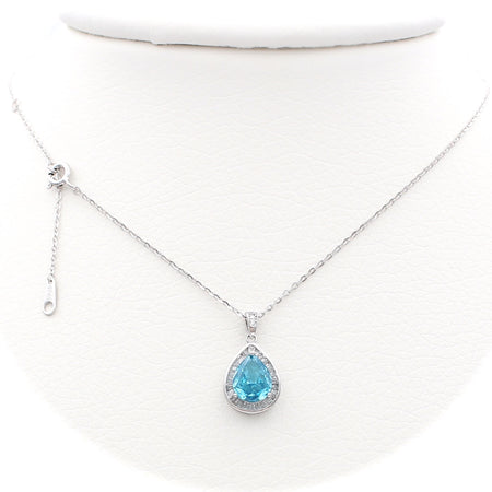 Το κολιέ είναι διακοσμημένο από μπλε κεντρική πέτρα και λευκές πέτρες ζιργκόν περιφερειακά