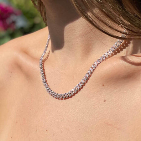 Η αλυσίδα είναι διακοσμημένη από λευκές πέτρες ζιργκόν