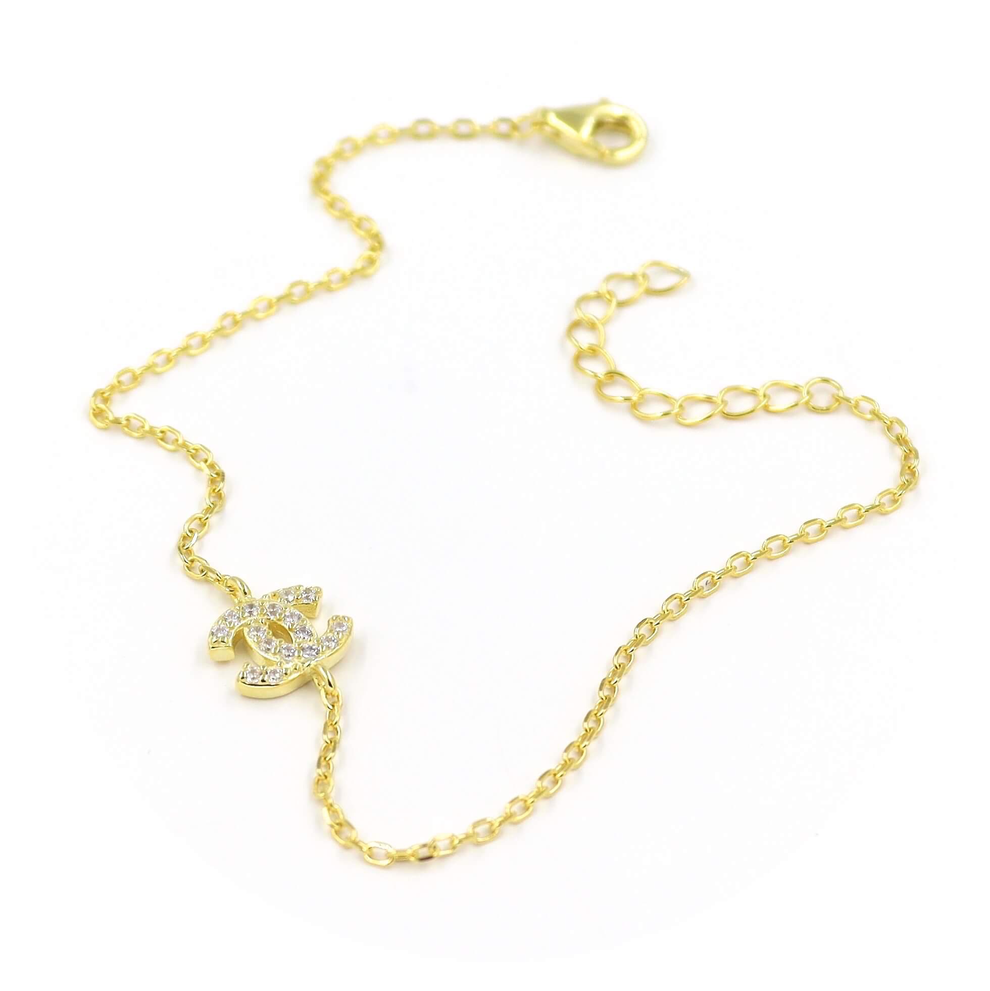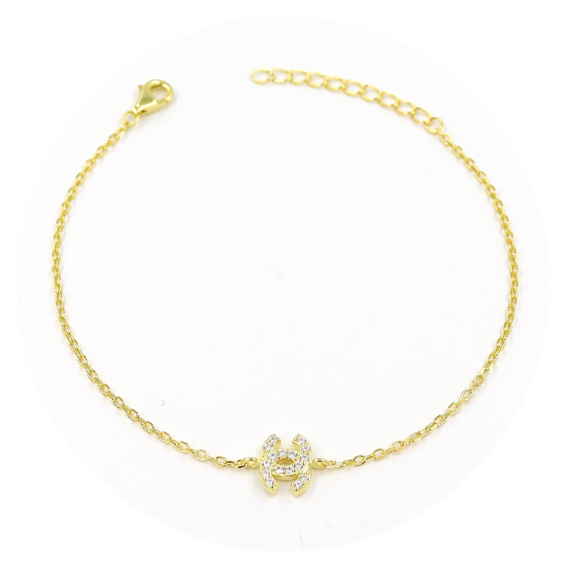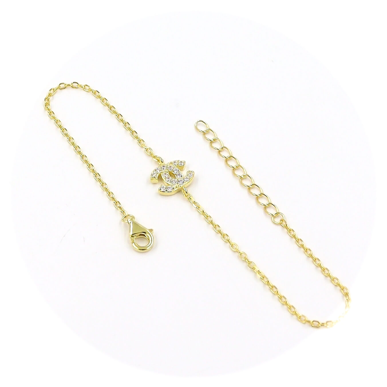 Ασημένιο επιχρυσωμένο βραχιόλι με μοτίφ τύπου Σανέλ