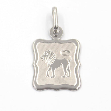 Ασημένιο πλακάκι με αλυσίδα και χαραχτό ζώδιο "Λέων"
