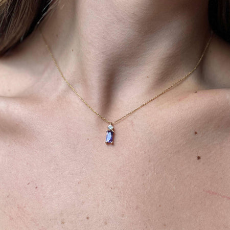 Τα σκουλαρίκια είναι διακοσμημένα από μωβ ορθογώνιες και στρόγγυλες λευκές πέτρες ζιργκόν